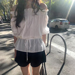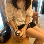 KOREAN COLLECTION 2505 一字肩束腰木耳边衬衫 白