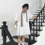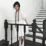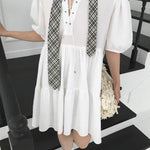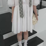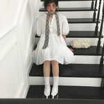 KOREAN COLLECTION 2505 交叉系带泡泡袖连衣裙 白