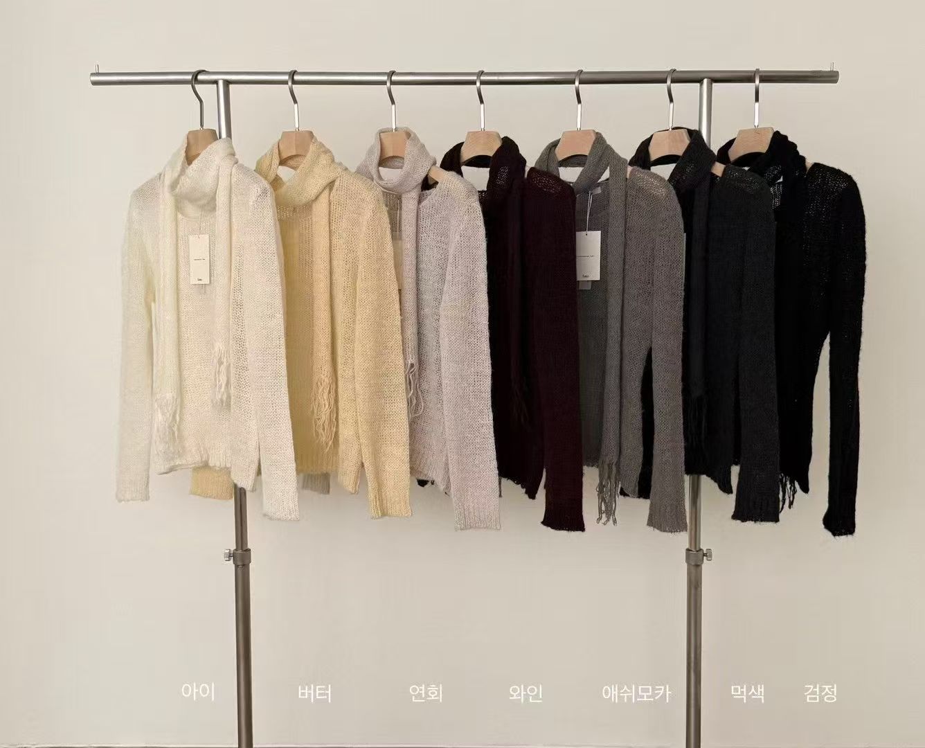 KOREAN COLLECTION 2510 可斜肩慵懒风围巾针织毛衣 黑