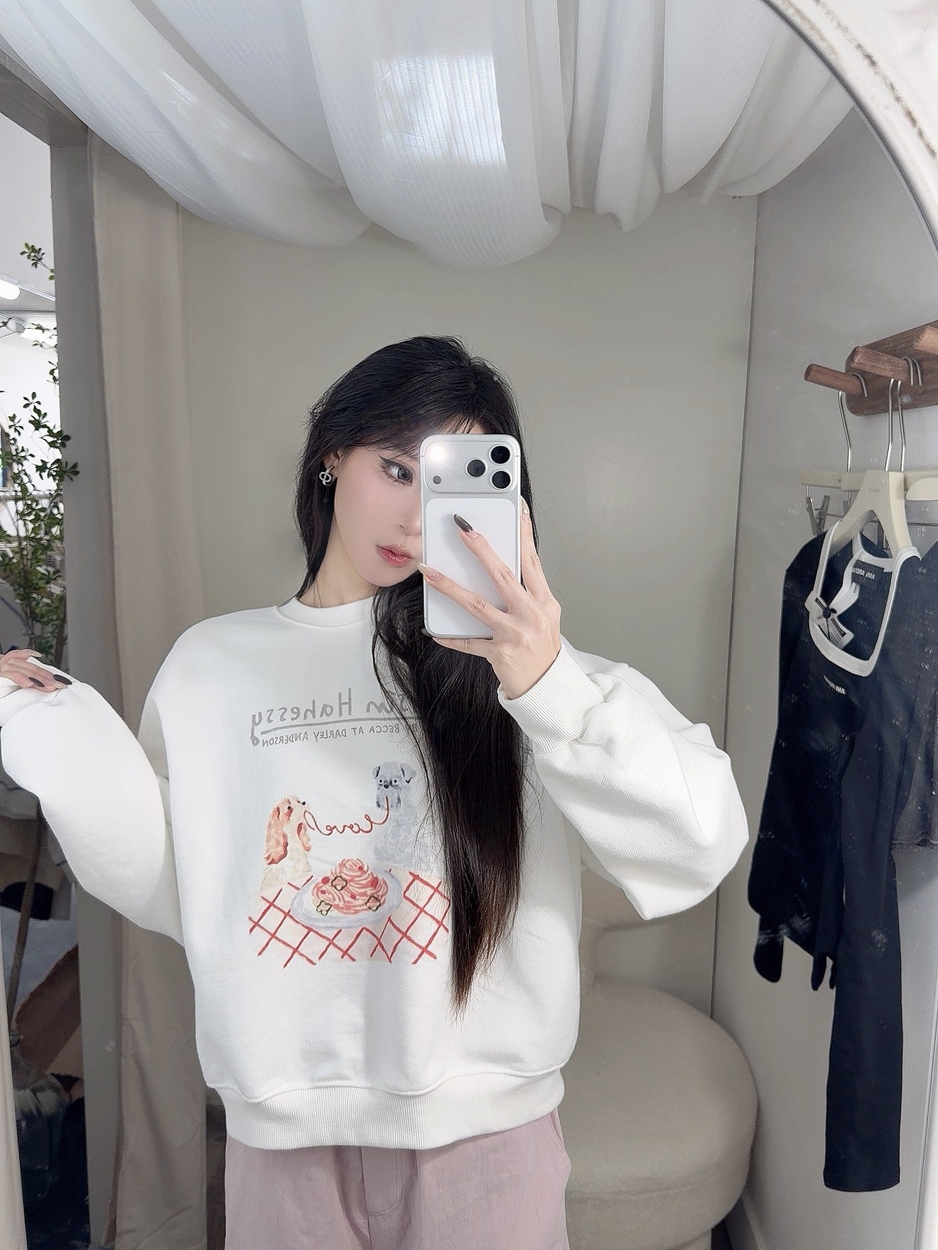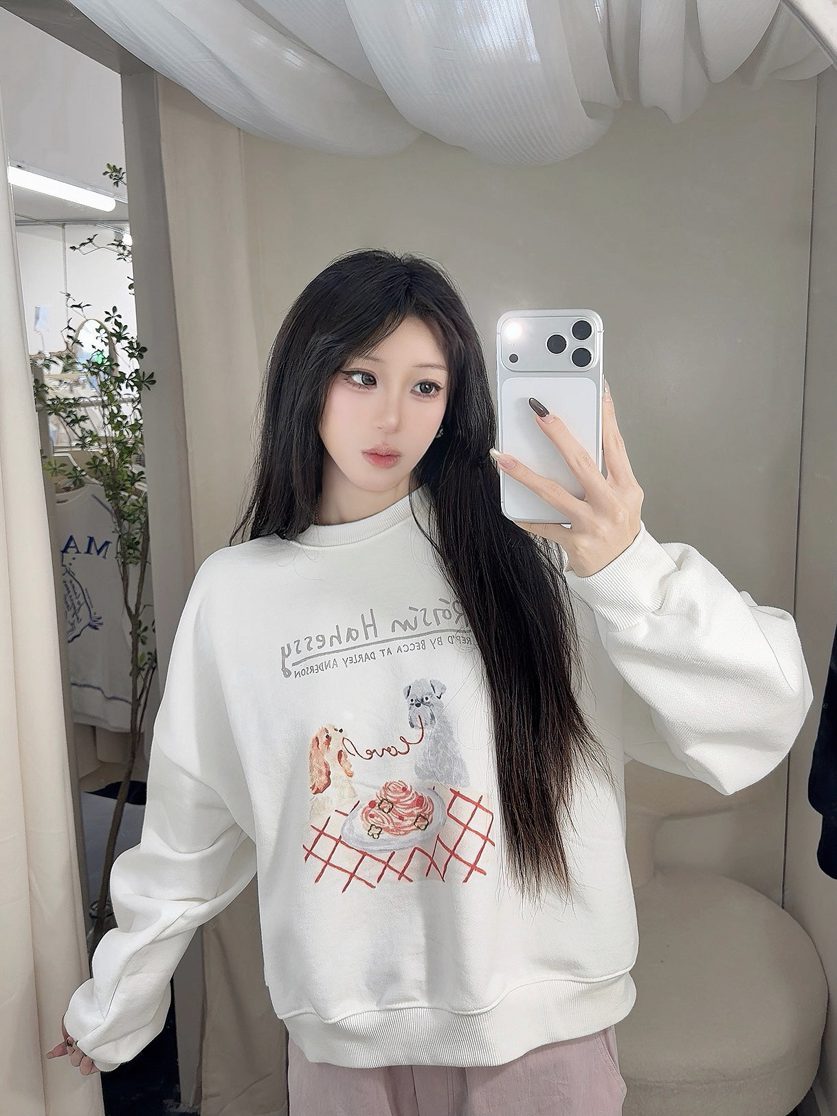 KOREAN COLLECTION 2511 狗狗印花圆领拉绒套头卫衣