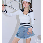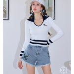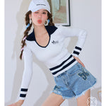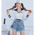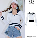 Kroche 刺绣蝴蝶标撞色翻领长袖