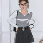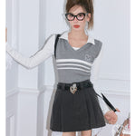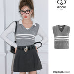 Kroche 手绘蝴蝶刺绣撞色条纹针织马甲