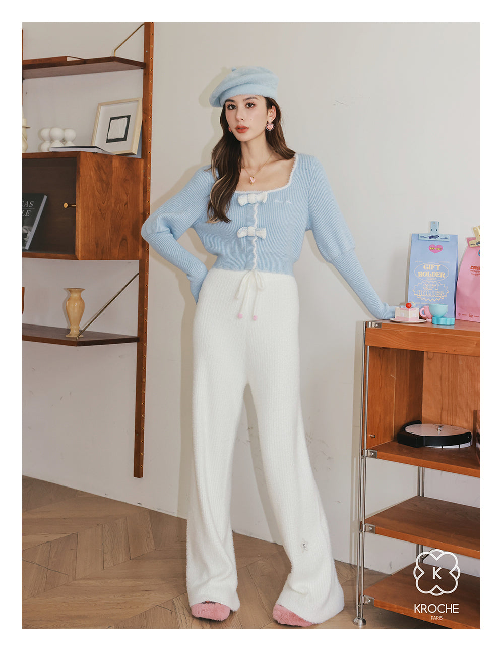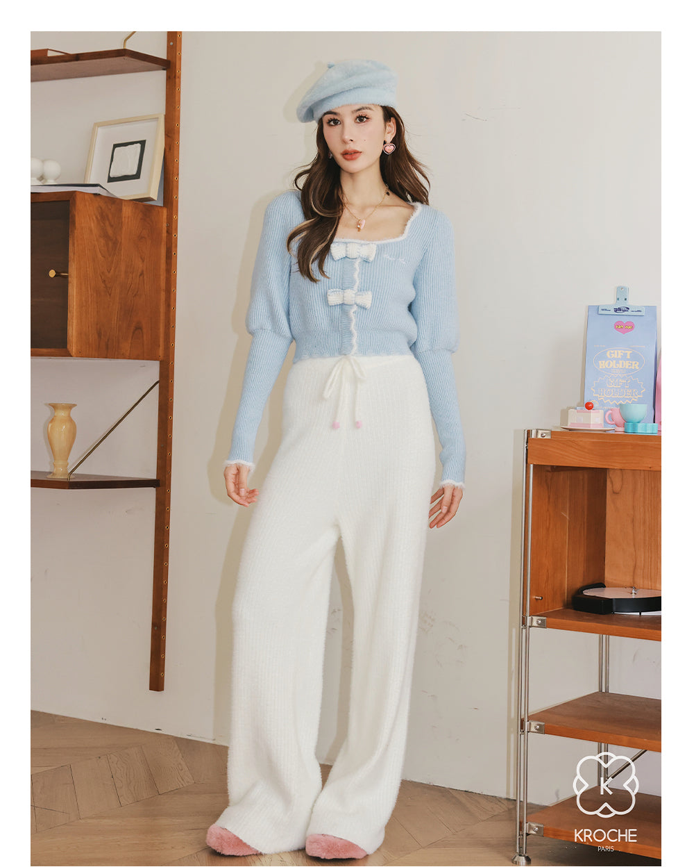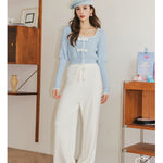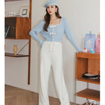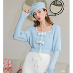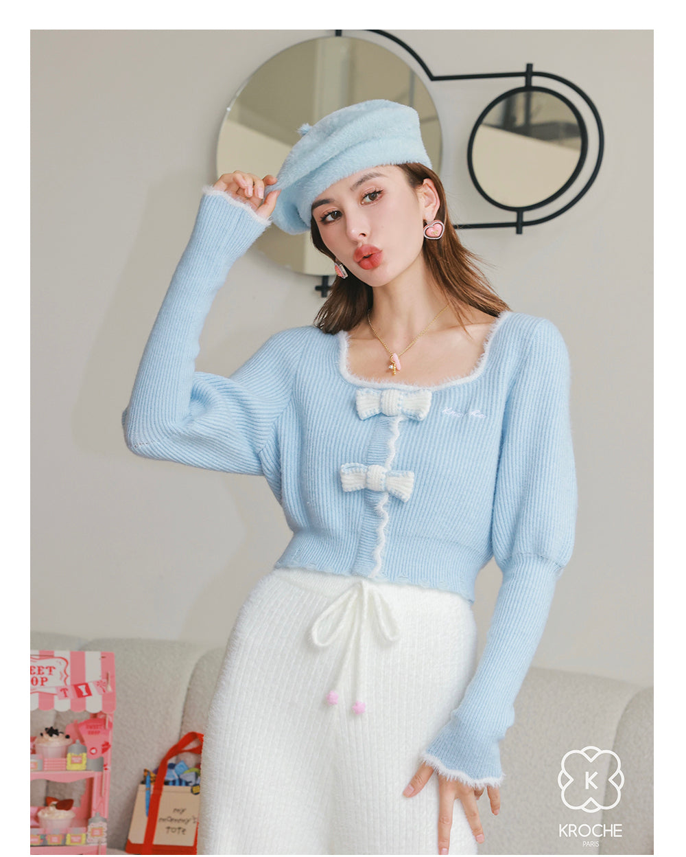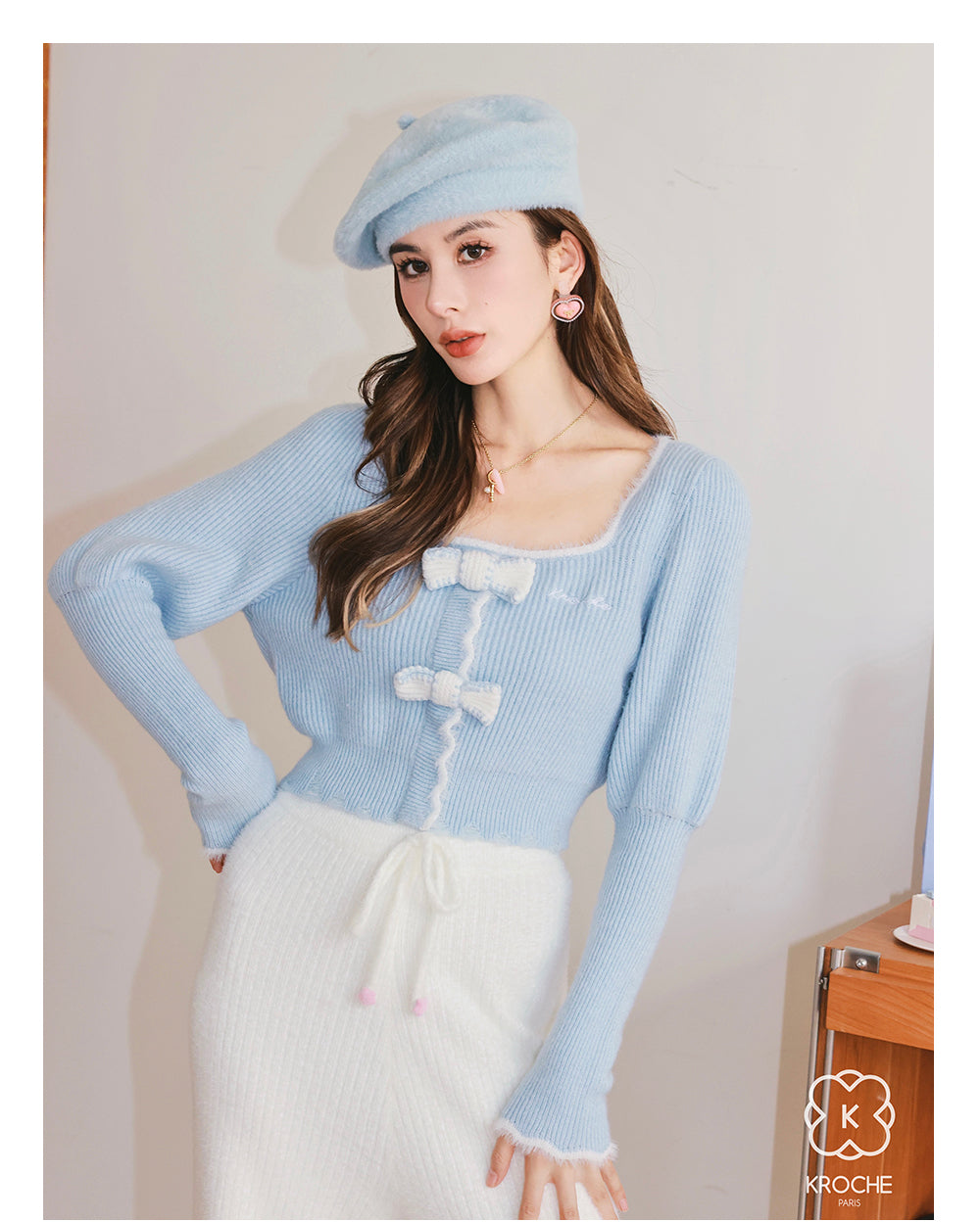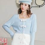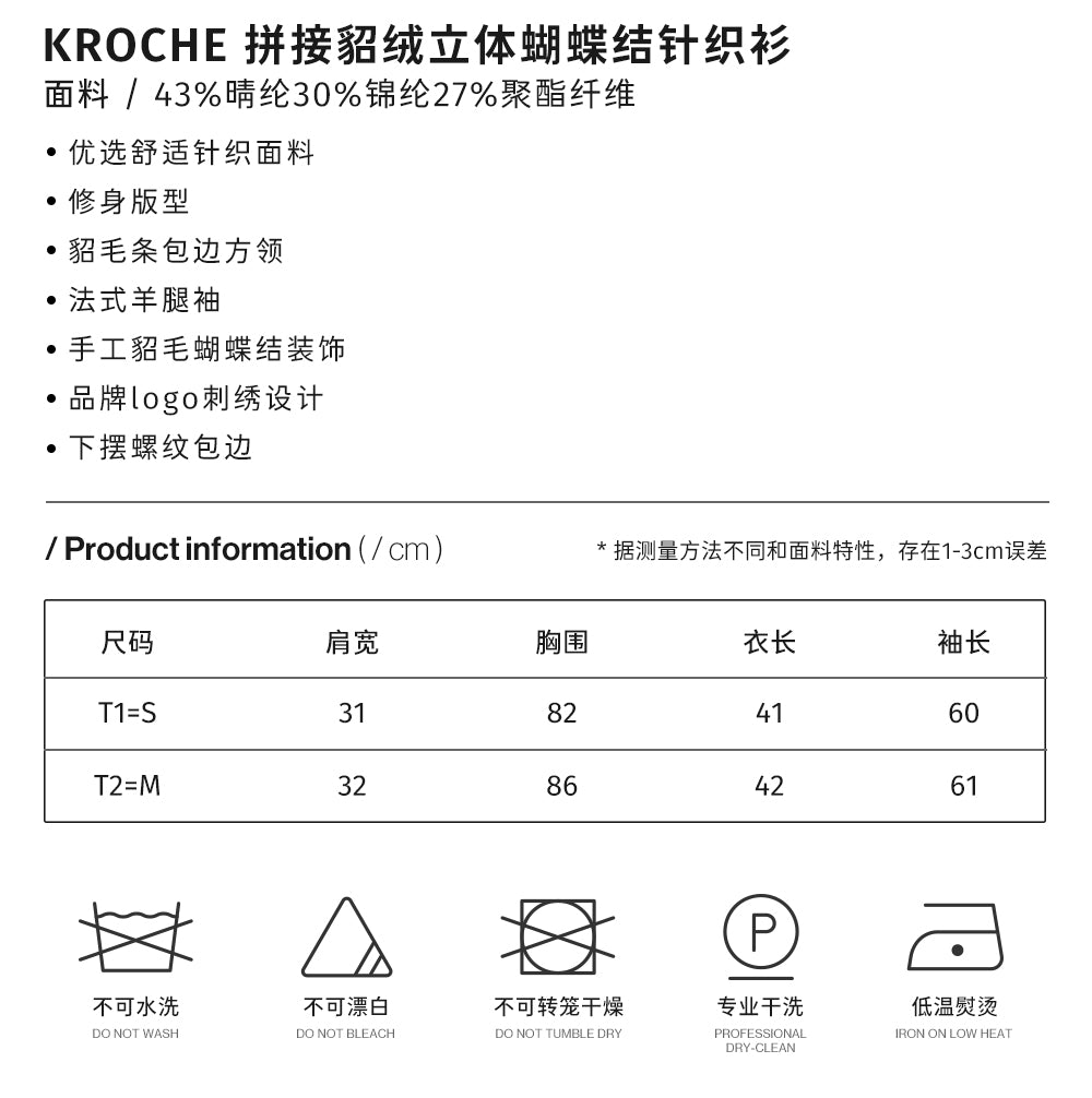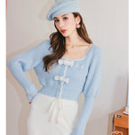 Kroche 拼接貂绒立体蝴蝶结针织衫 蓝