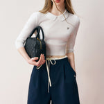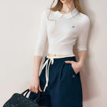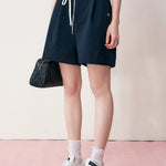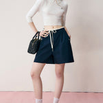 Kroche 2406 腰头拼接系带A字西装短裤 藏青