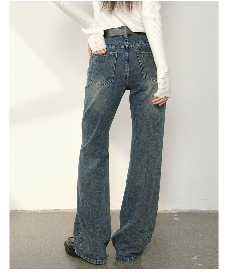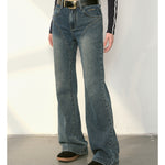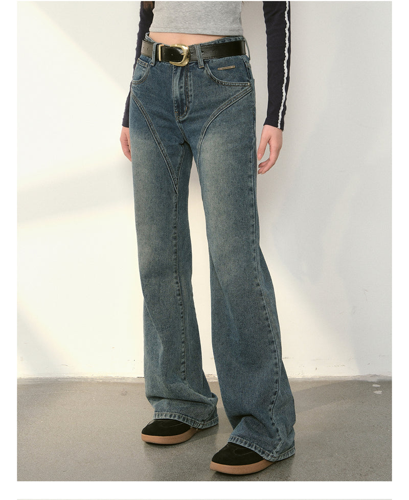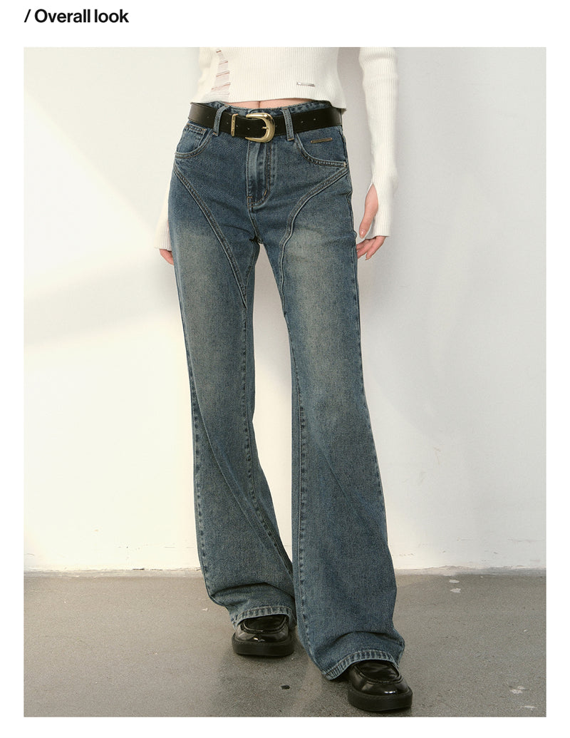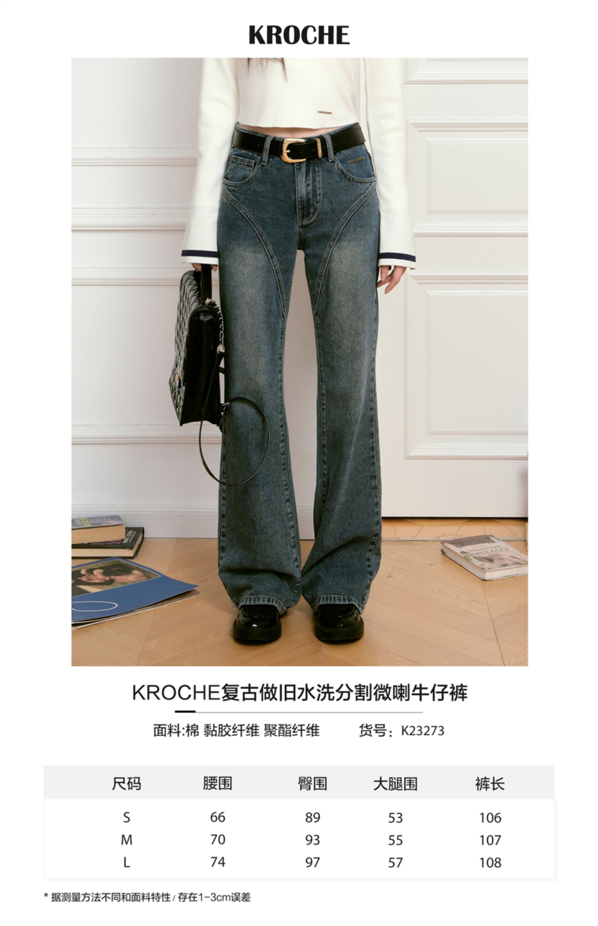 Kroche 2409 复古做旧水洗分割牛仔长裤