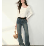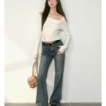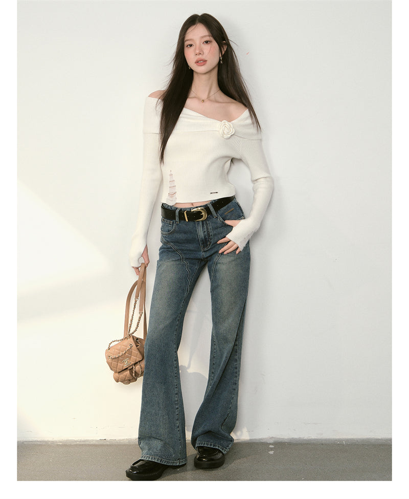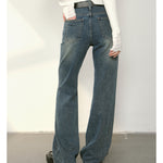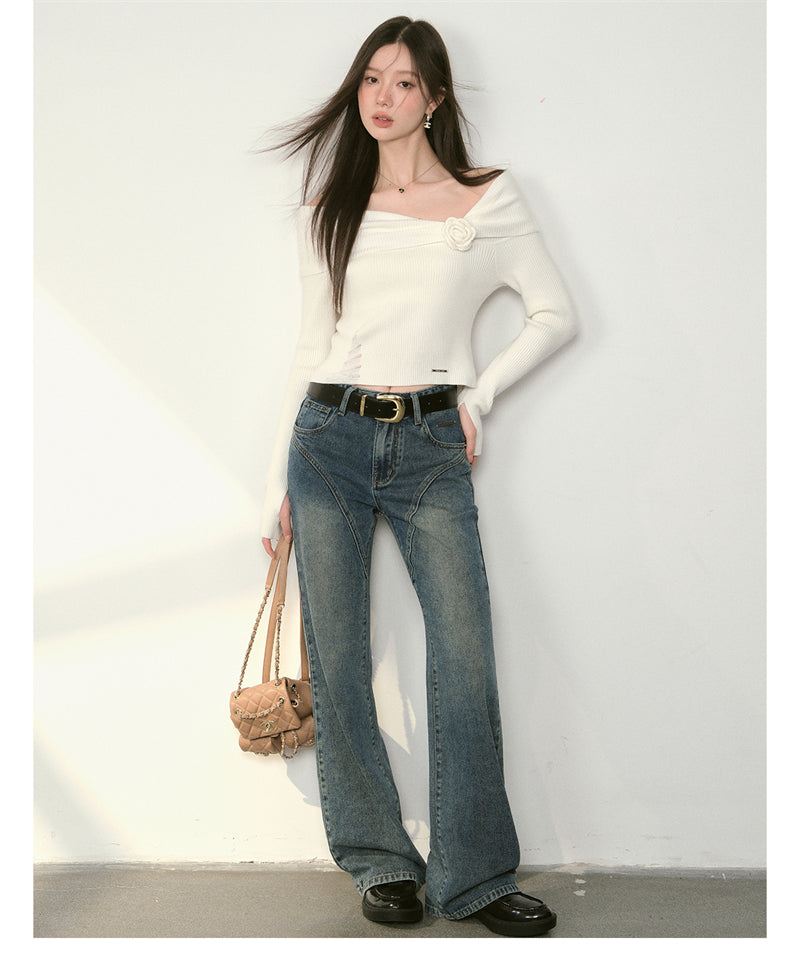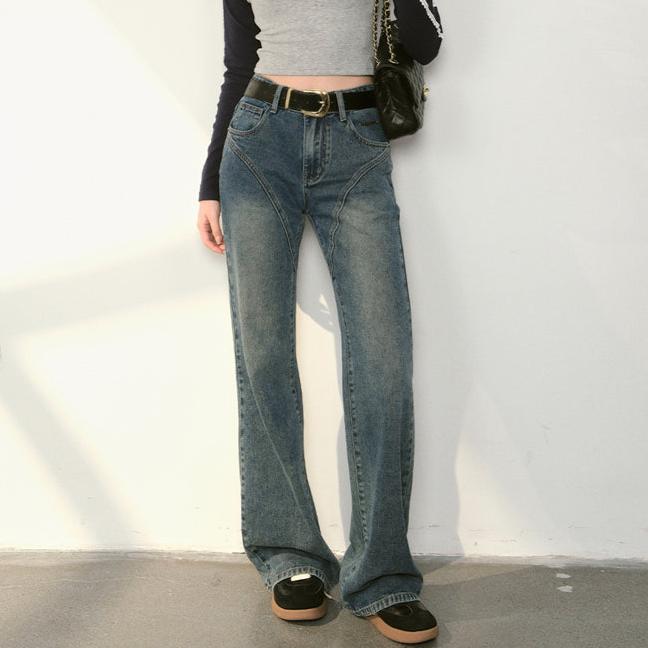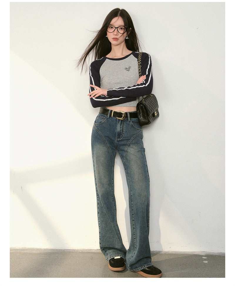 Kroche 2409 复古做旧水洗分割牛仔长裤