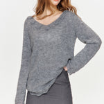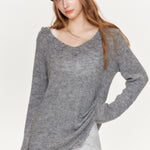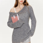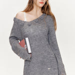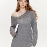 Kroche 2410 V领镂空毛衣斜肩设计毛衫 灰