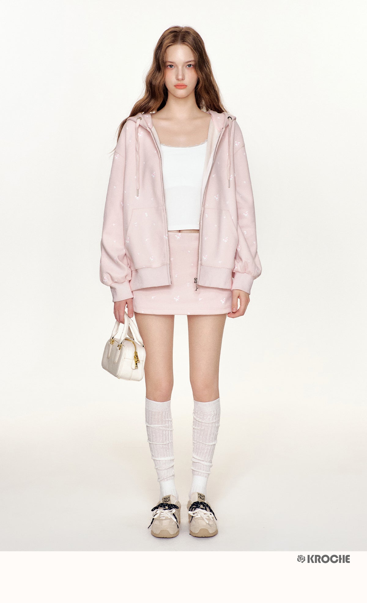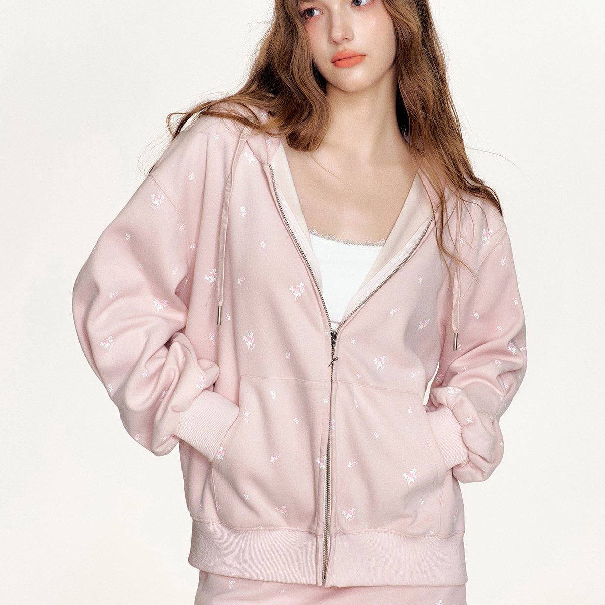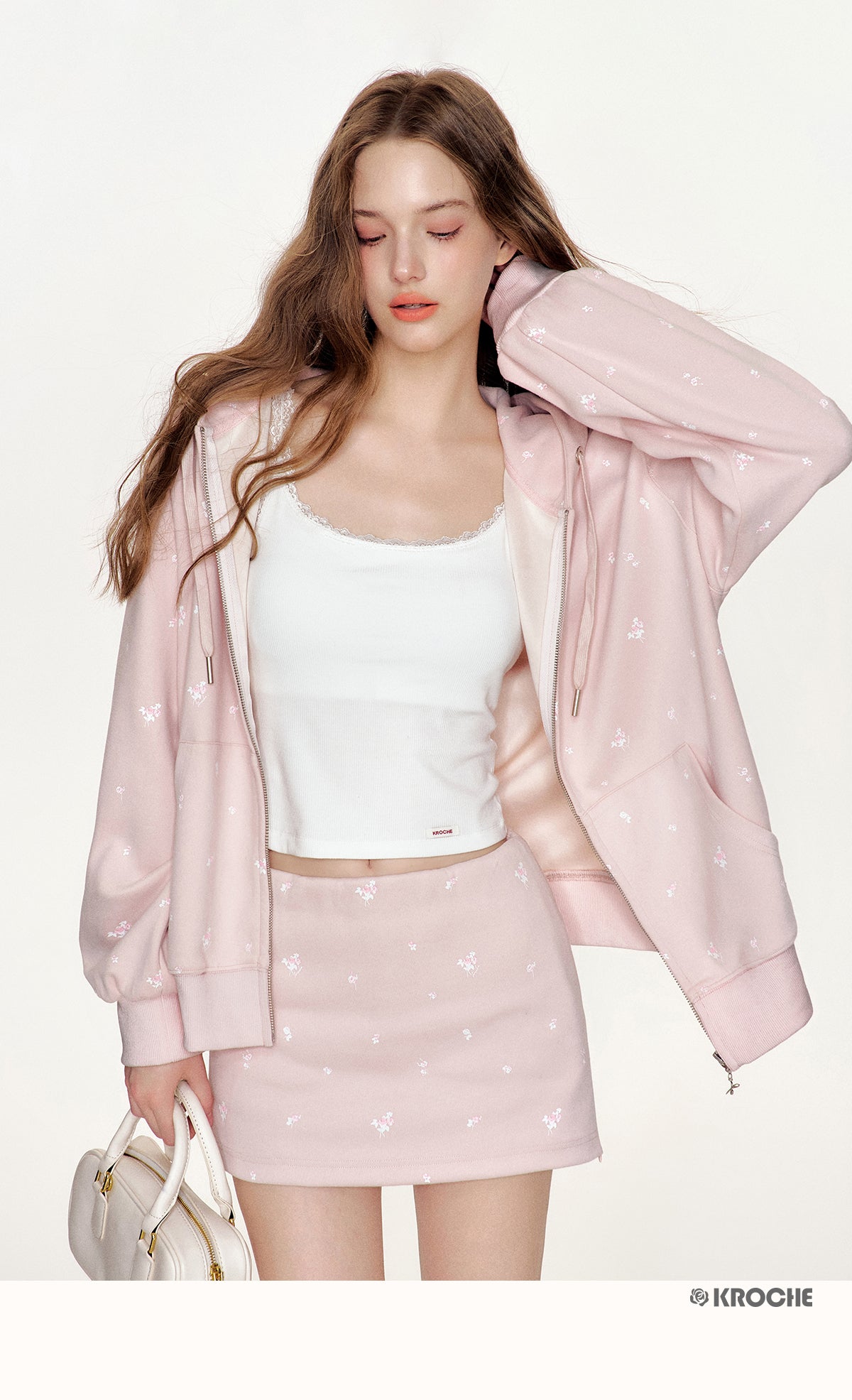 Kroche 2411 玫瑰印花 连帽宽松卫衣外套