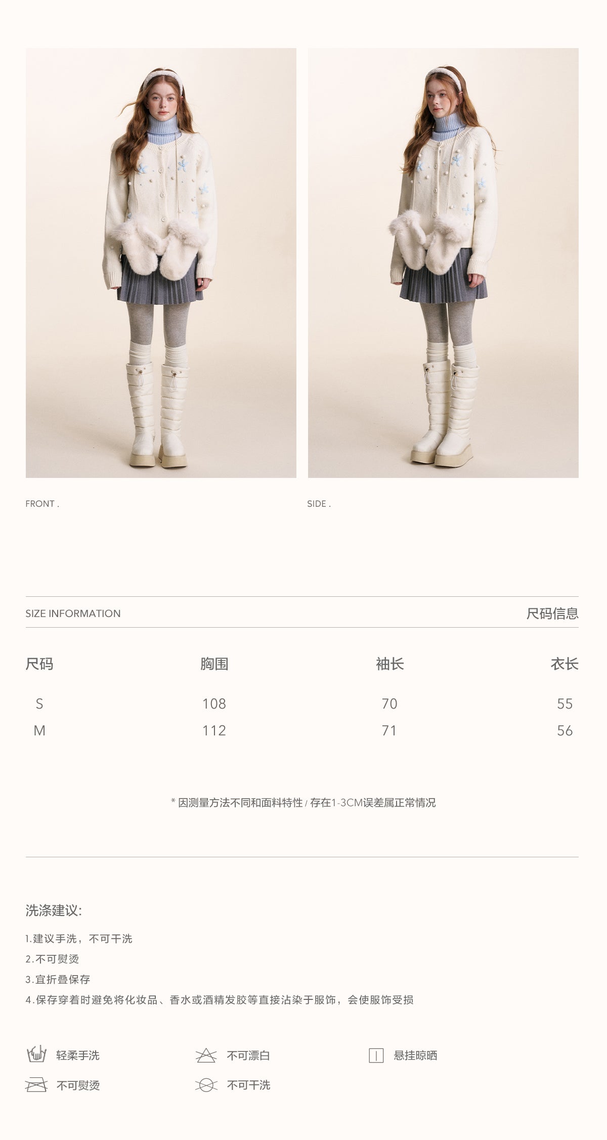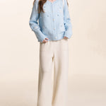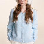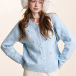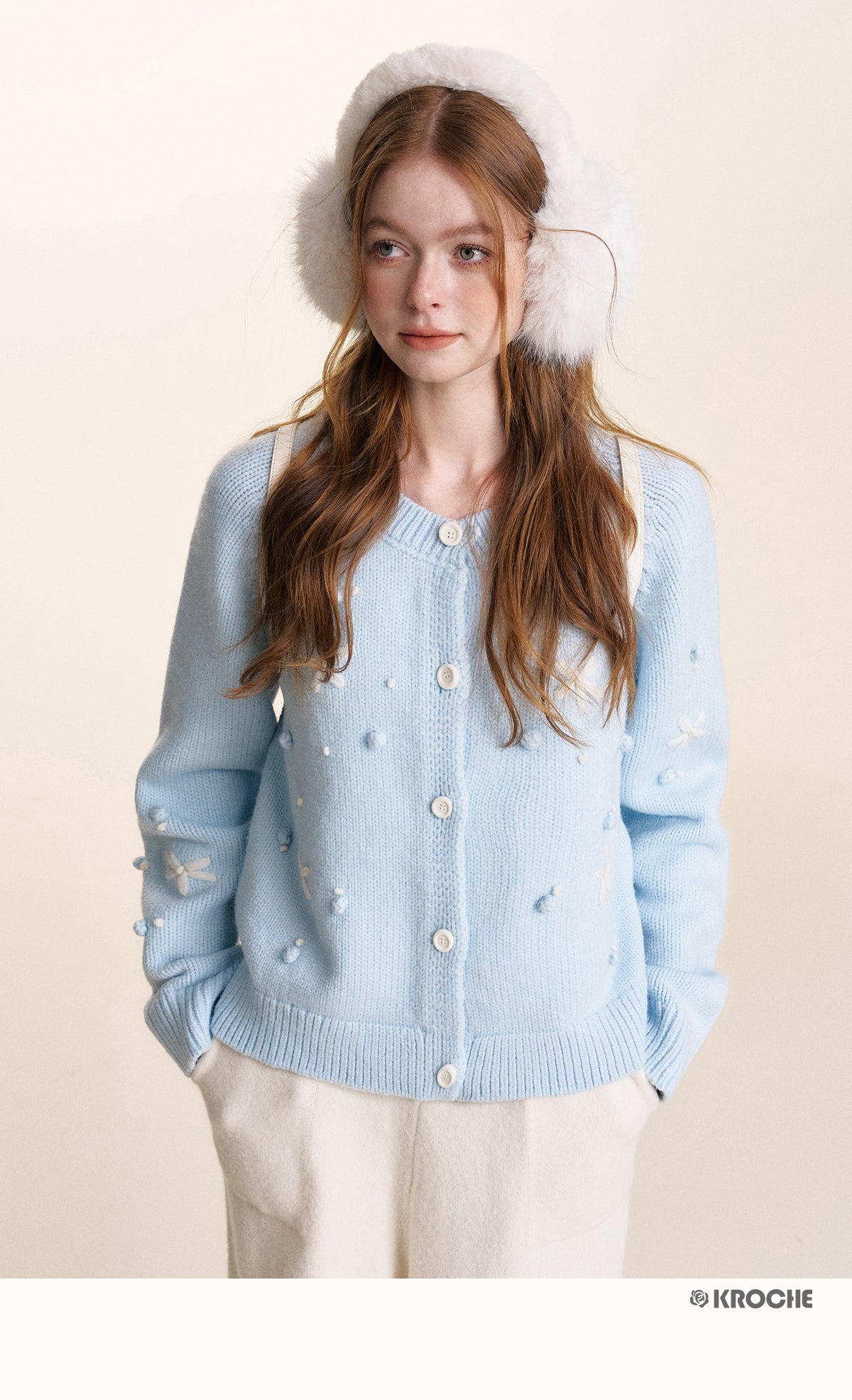 Kroche 2501 立体手钩绣雪花圆领毛衣 浅蓝