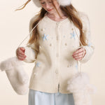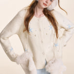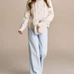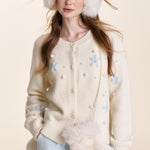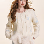 Kroche 2501 立体手钩绣雪花圆领毛衣 白