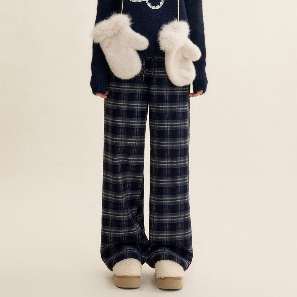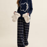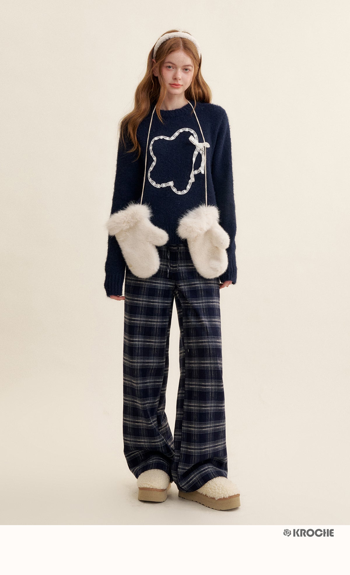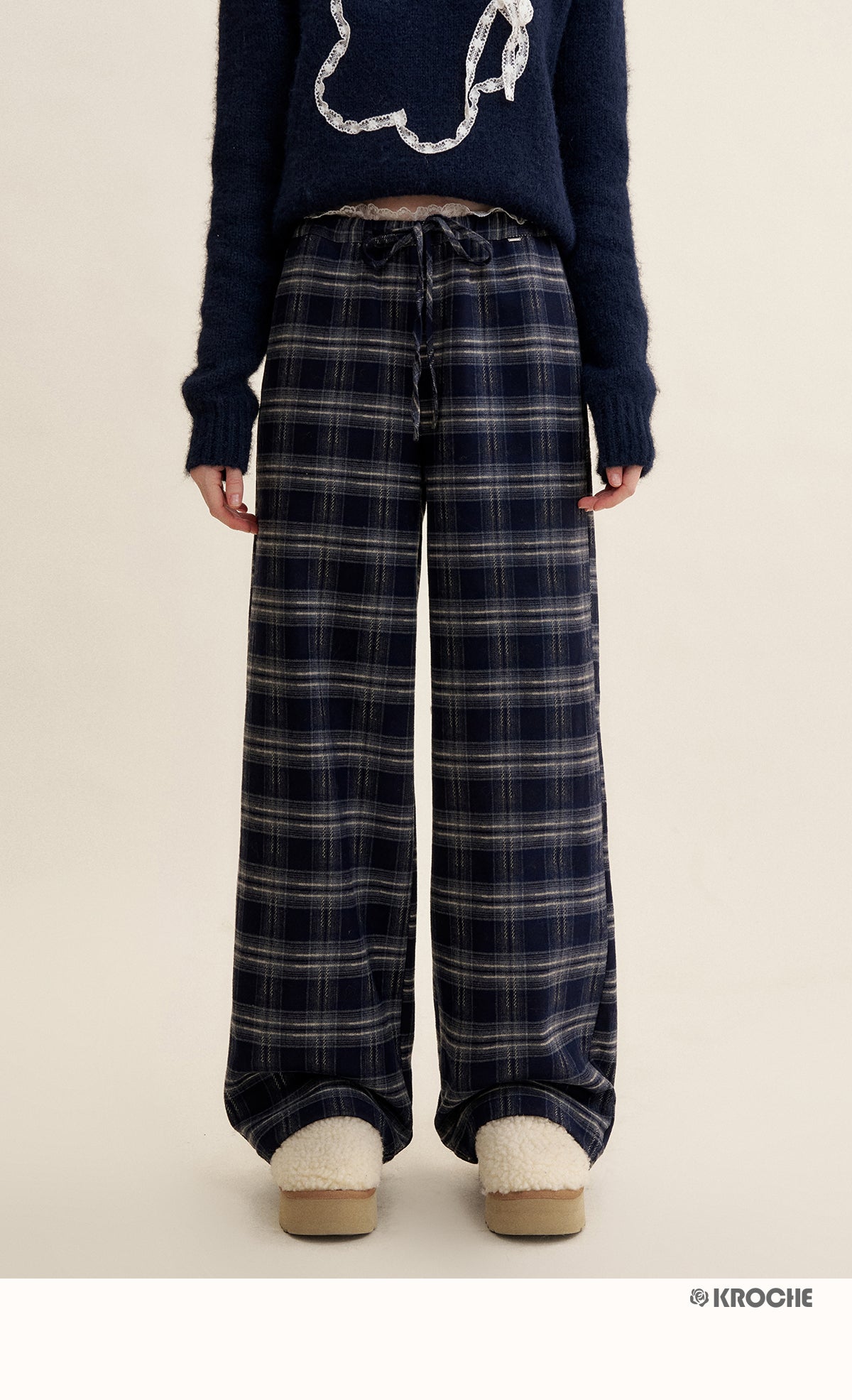 Kroche 2501 蕾丝拼接抽绳宽松阔腿裤