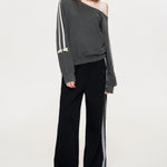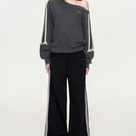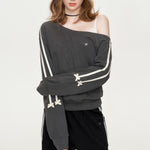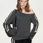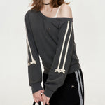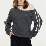 Kroche 2503 撞色花边 休闲宽松蝴蝶结斜肩卫衣