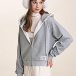 Kroche 2503 蕾丝花边 连帽暖芙绒卫衣外套