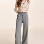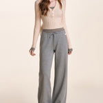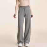 Kroche 2504 抽绳宽松高腰直筒休闲裤 灰