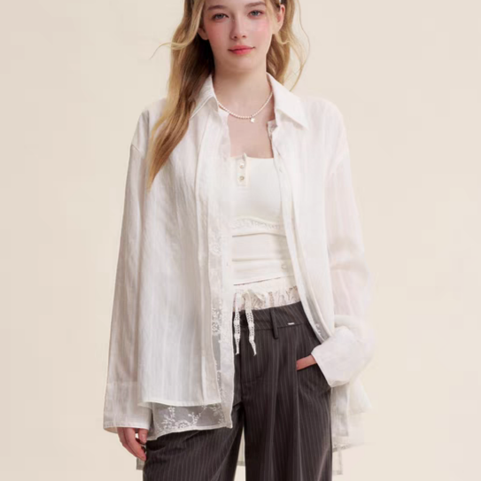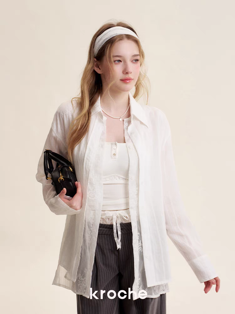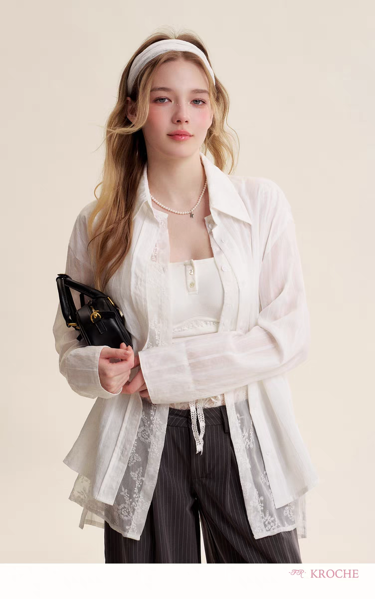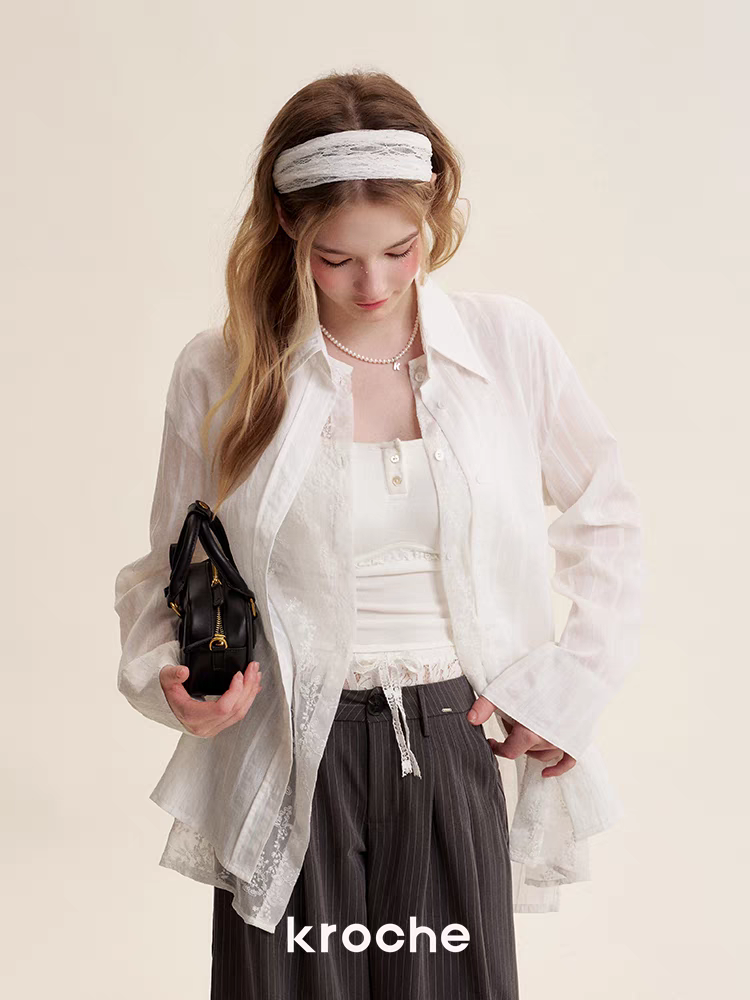 Kroche 2505 法式蕾丝双门襟假两件衬衫