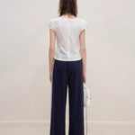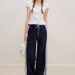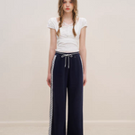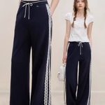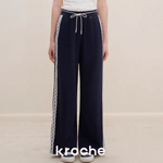 Kroche 2506 撞色蕾丝花边高腰休闲阔腿裤