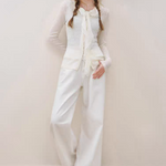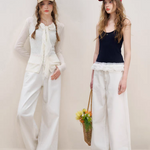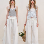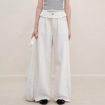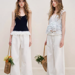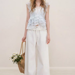 Kroche 2507 木耳花边全棉高腰直筒牛仔裤