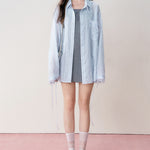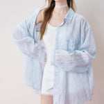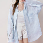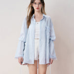 Kroche 2507 蕾丝拼接丝带条纹衬衫