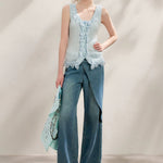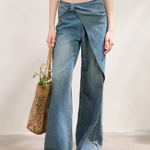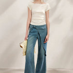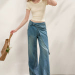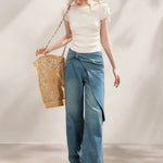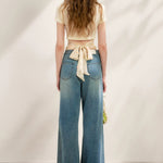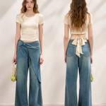 Kroche 2508 立体蝴蝶结中腰阔腿牛仔