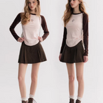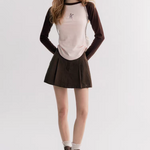 Kroche 2510 小猫印花撞色插肩长袖 粉咖拼