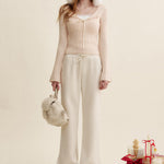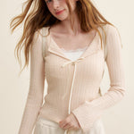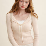 Kroche 2510 细绞花假两件拼接修身针织衫 蜜桃粉