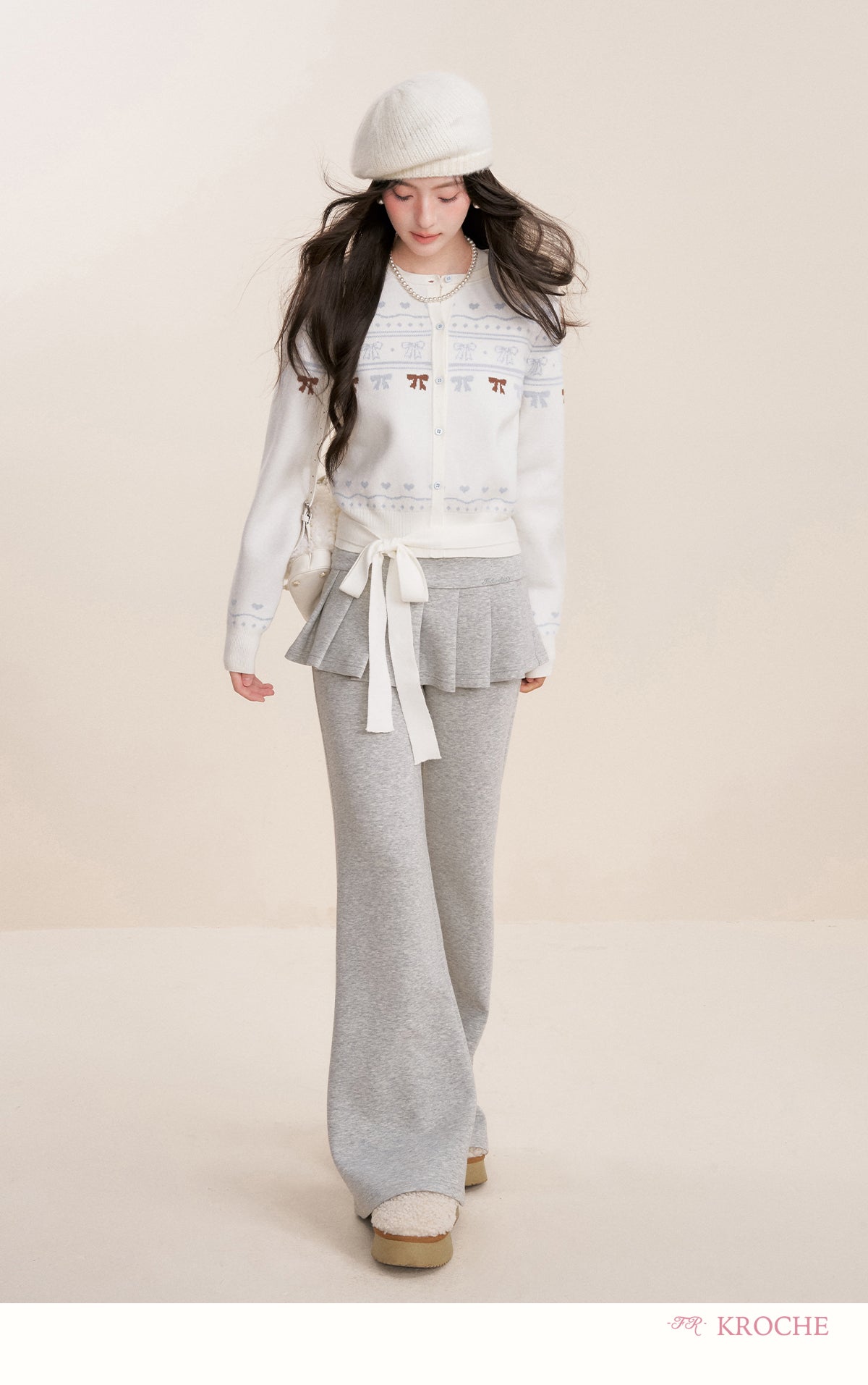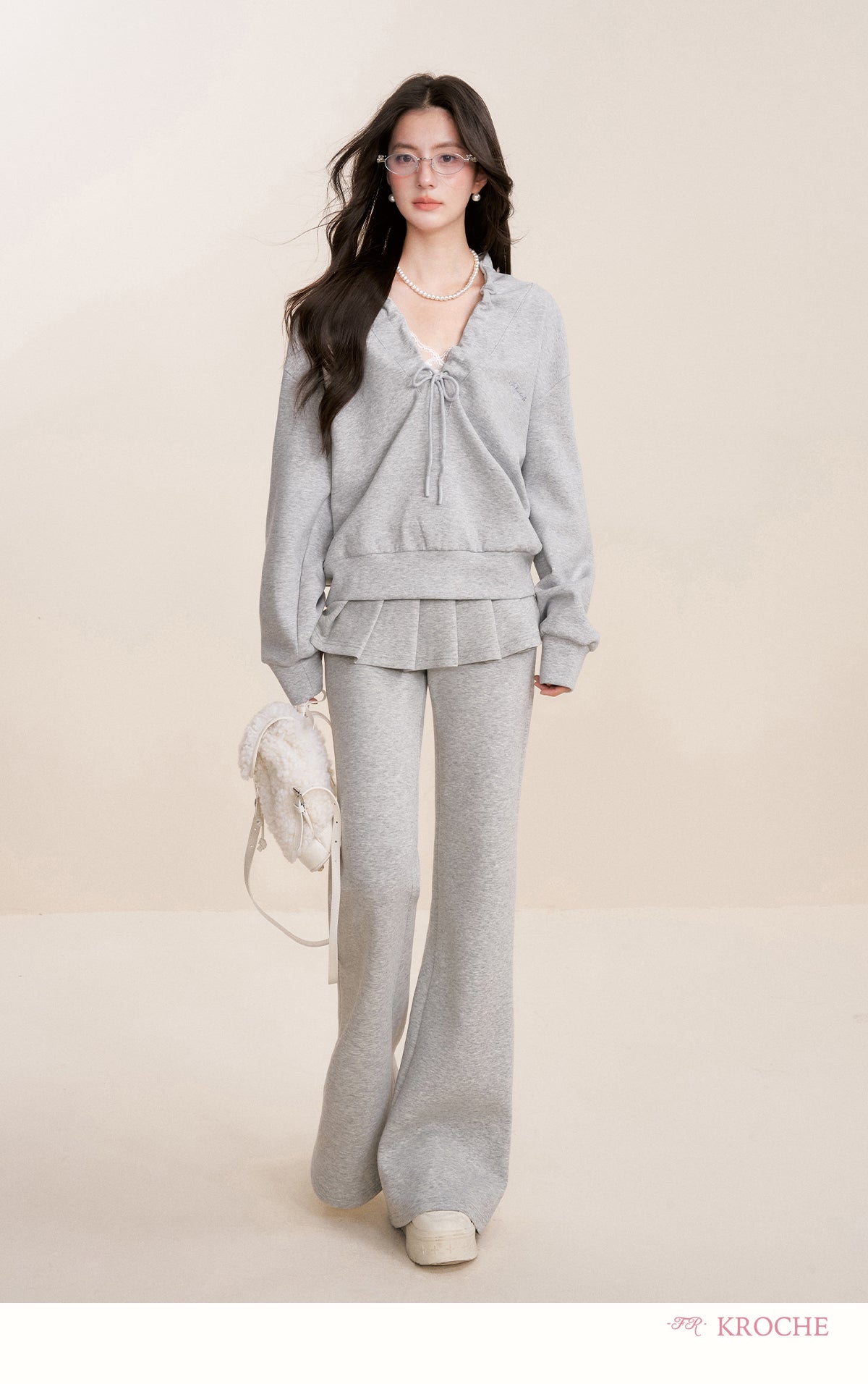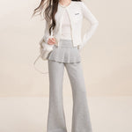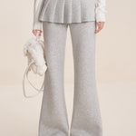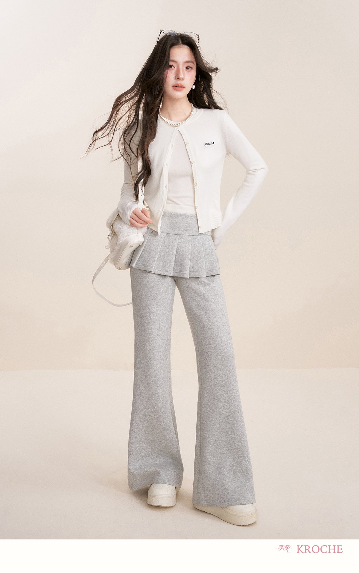 Kroche 2512 假两件 松紧腰A字百褶裙拼接休闲微喇裤