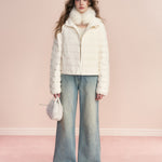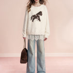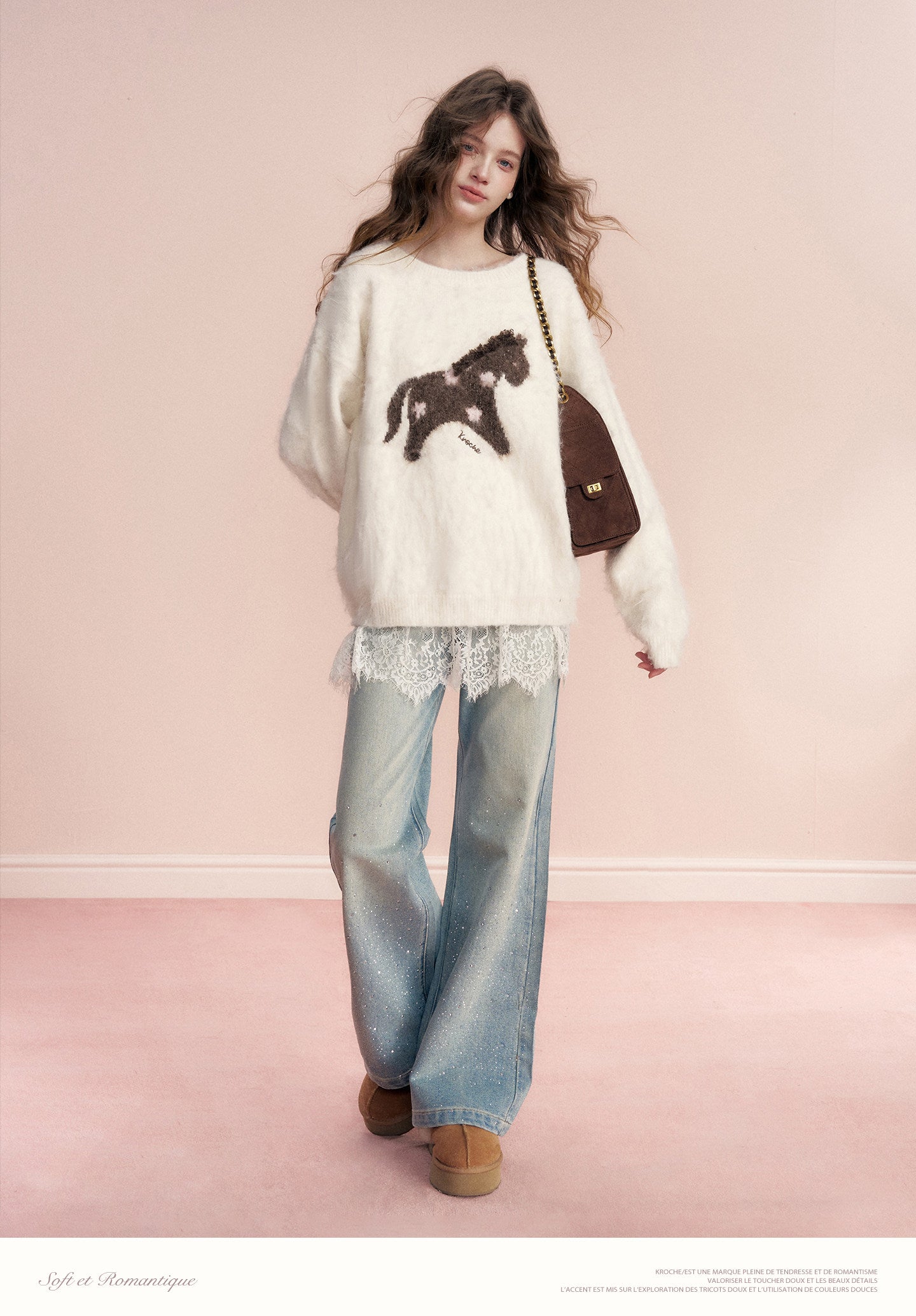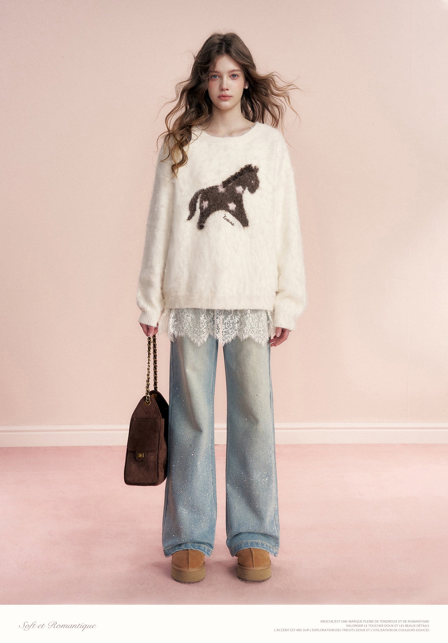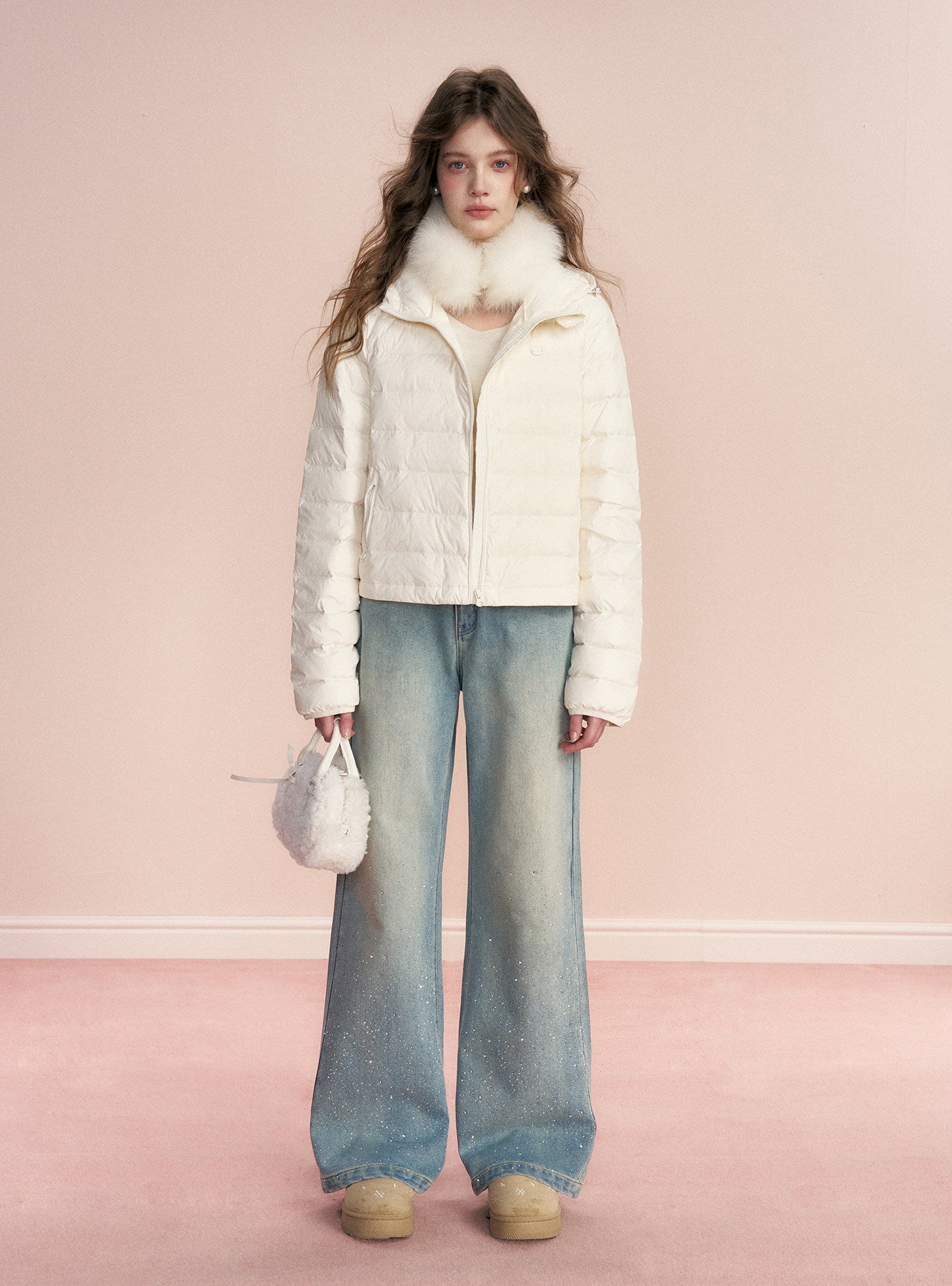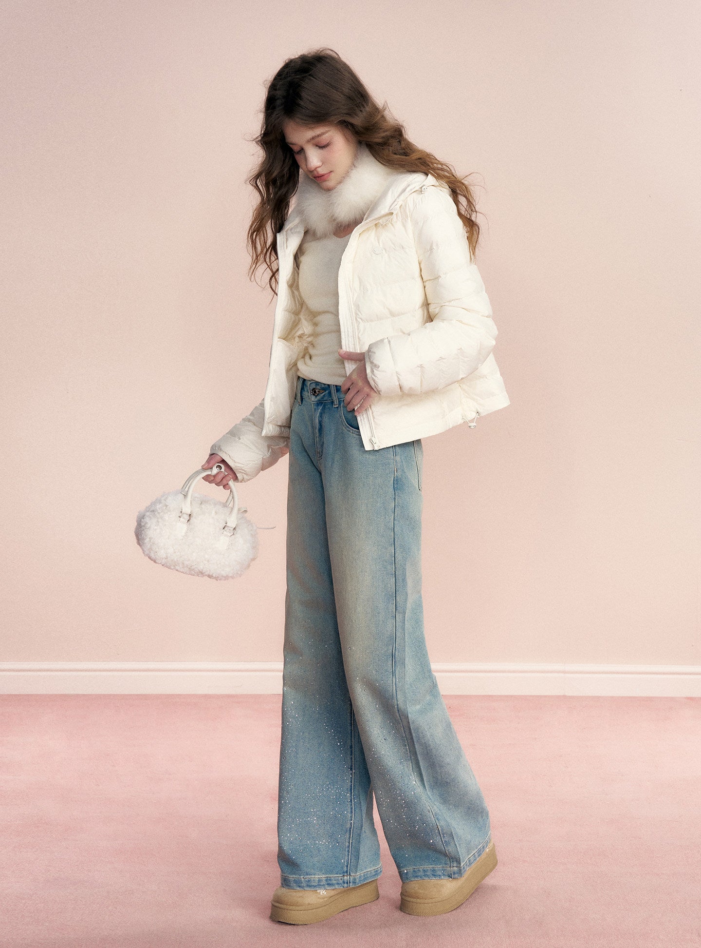 Kroche 2602 重工烫钻内里抓绒宽松直筒牛仔裤