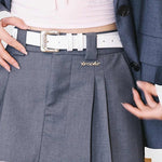 Kroche SS2306 宽金属镂空字母皮质腰带 白