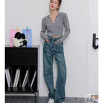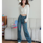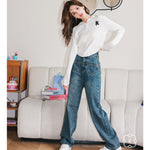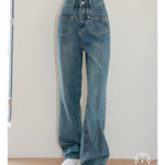Kroche SS2306 高腰前袋盖式爱心铆钉牛仔裤