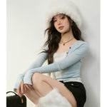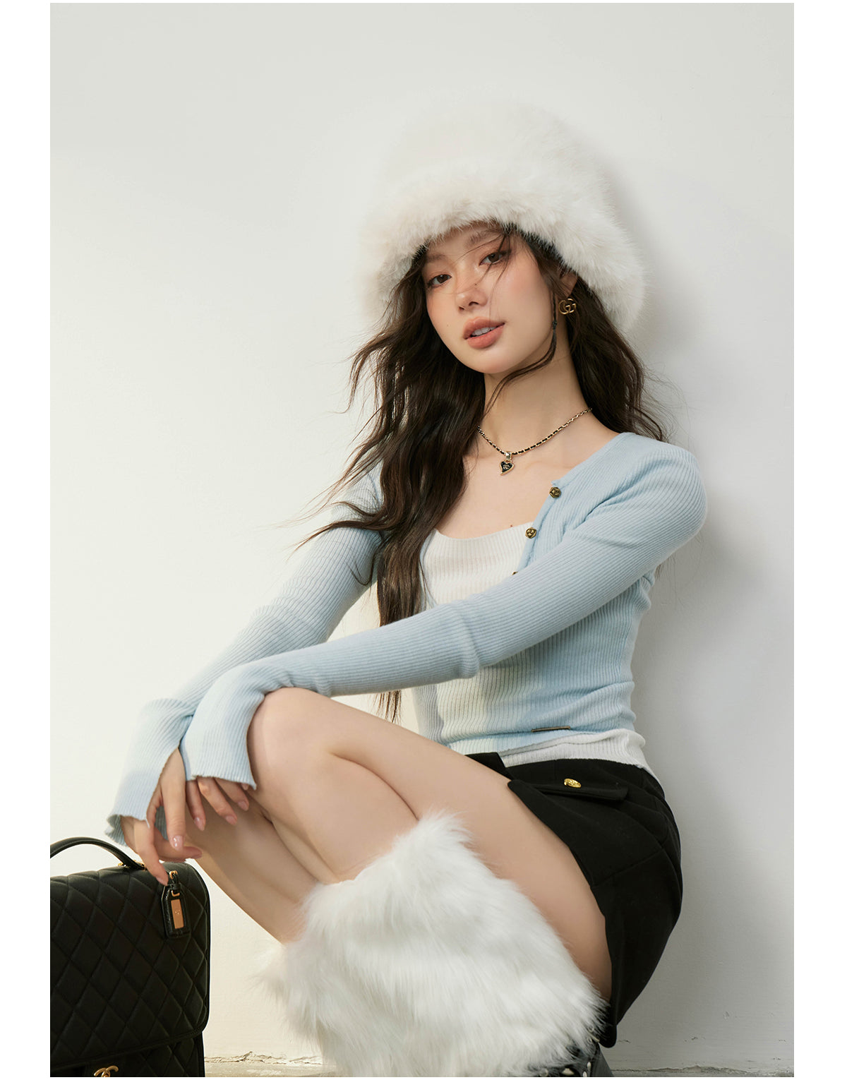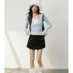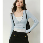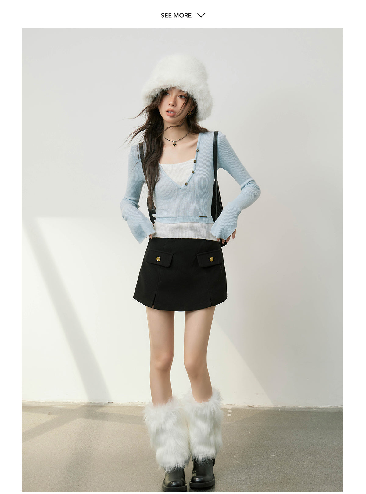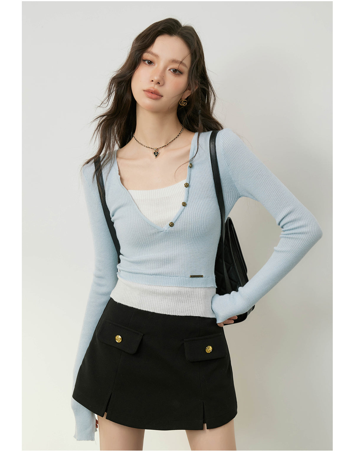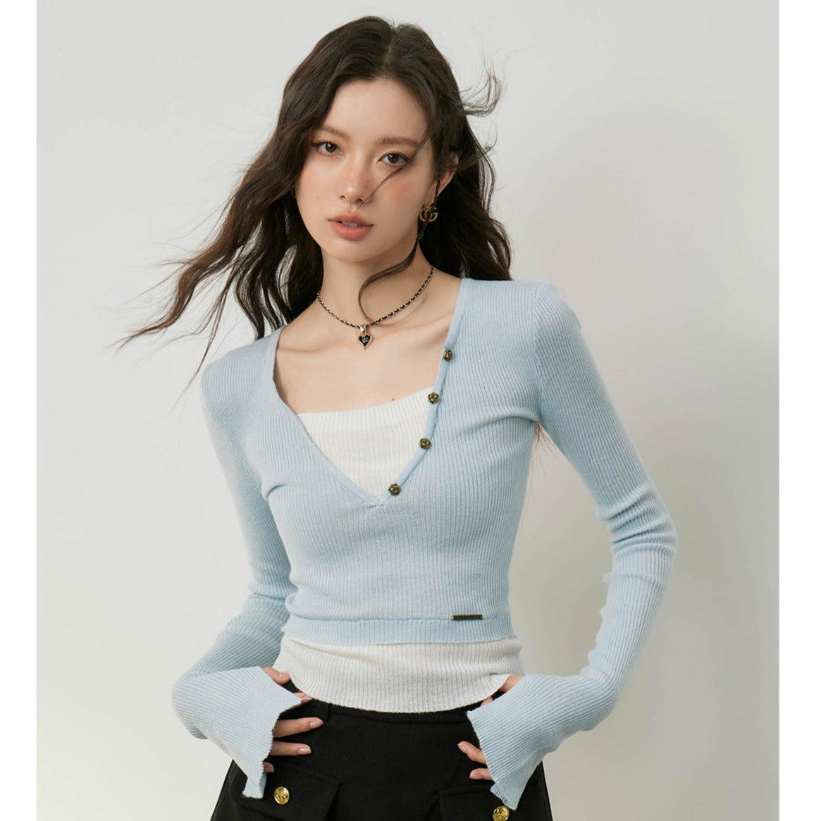 Kroche SS2311 拼接假两件v领针织衫 蓝