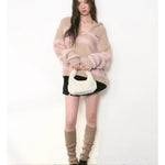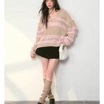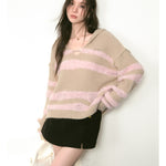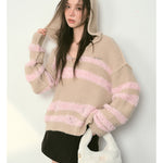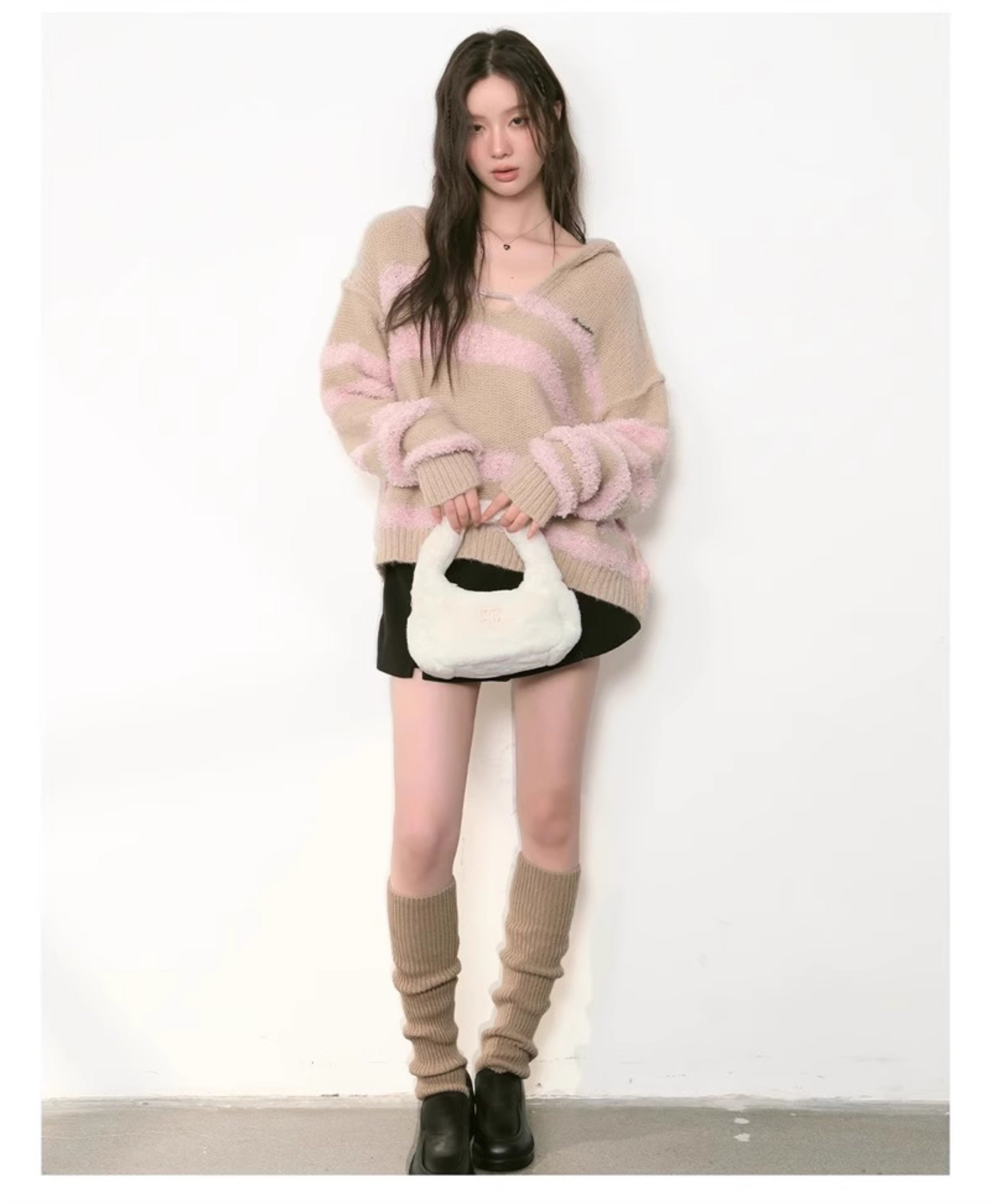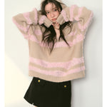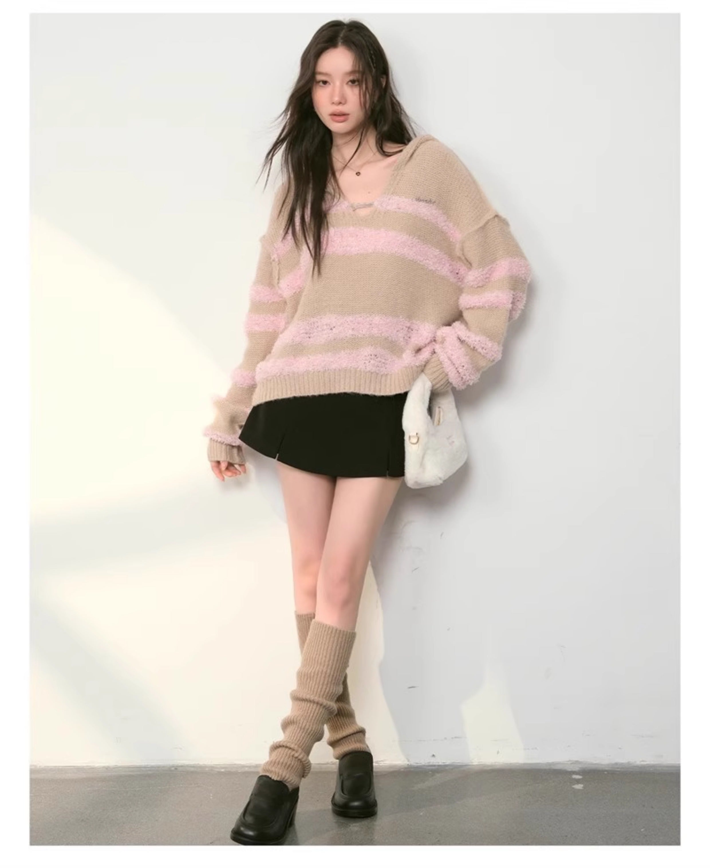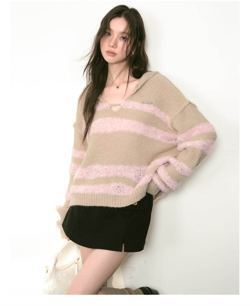 Kroche SS2311 撞色拼接条纹连帽毛衣