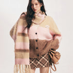 Kroche SS2312 撞色条纹拉毛感毛衣开衫