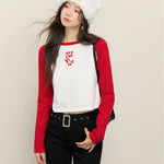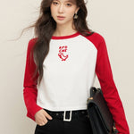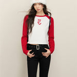 Kroche SS2401 刺绣插肩针织长袖T恤 红