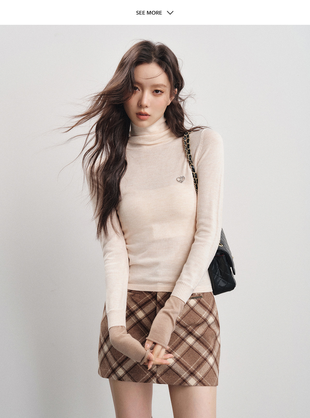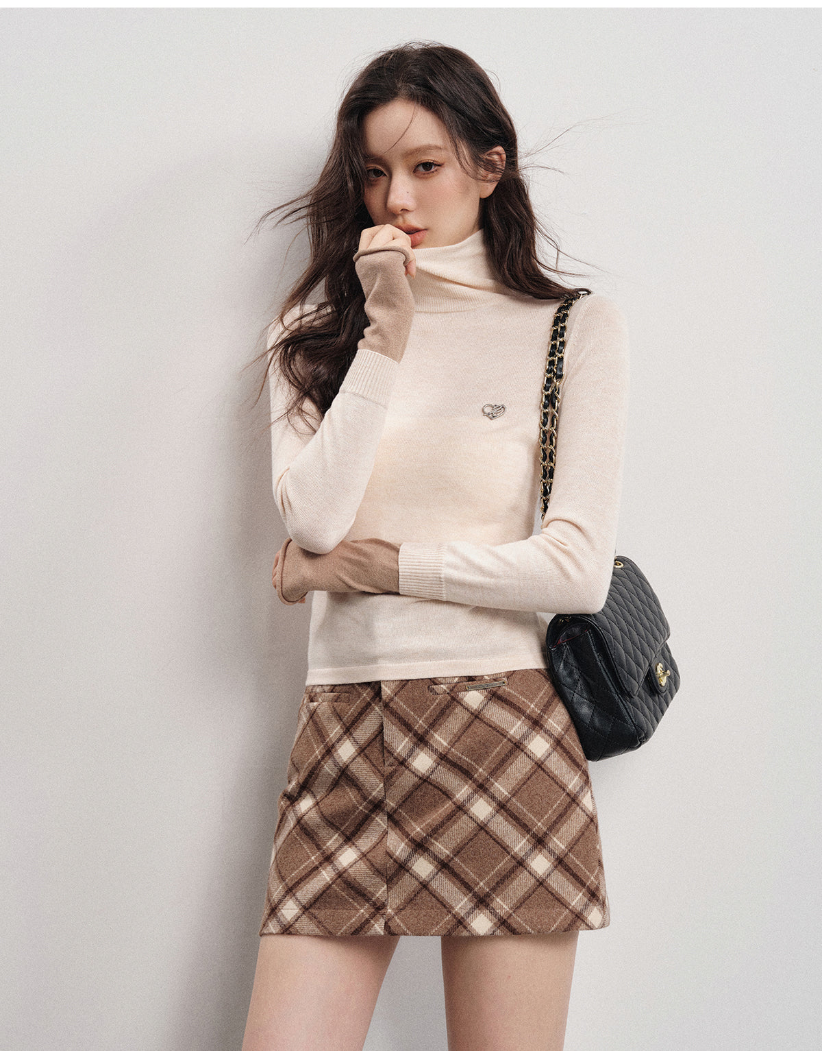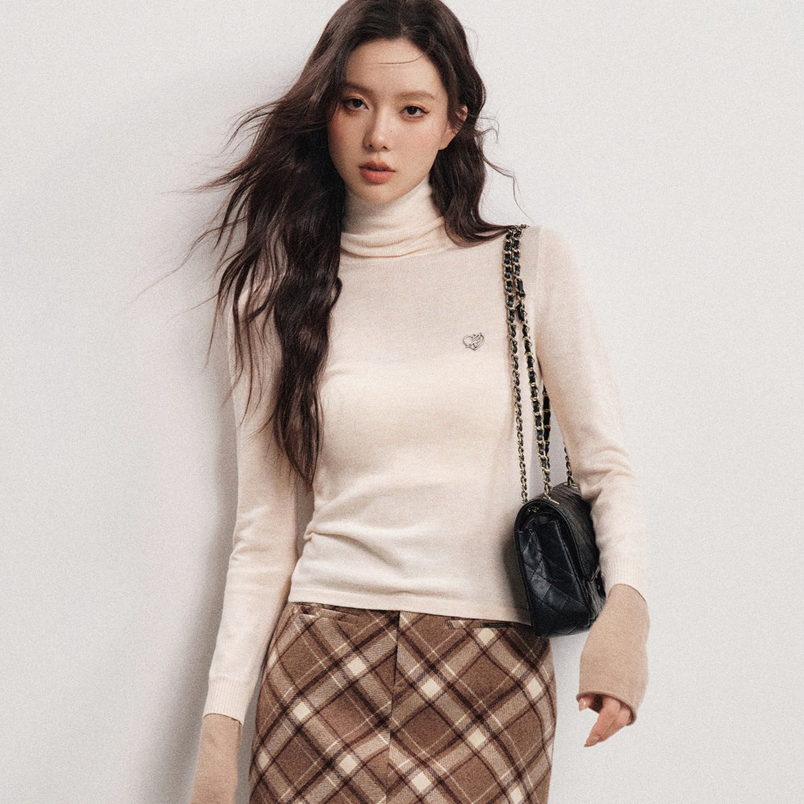 Kroche SS2401 袖口拼色高领羊毛打底衫 杏