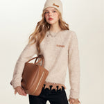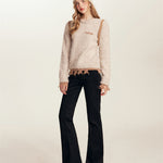 Kroche SS2402 撞色拼接撕边羊毛毛衣 杏
