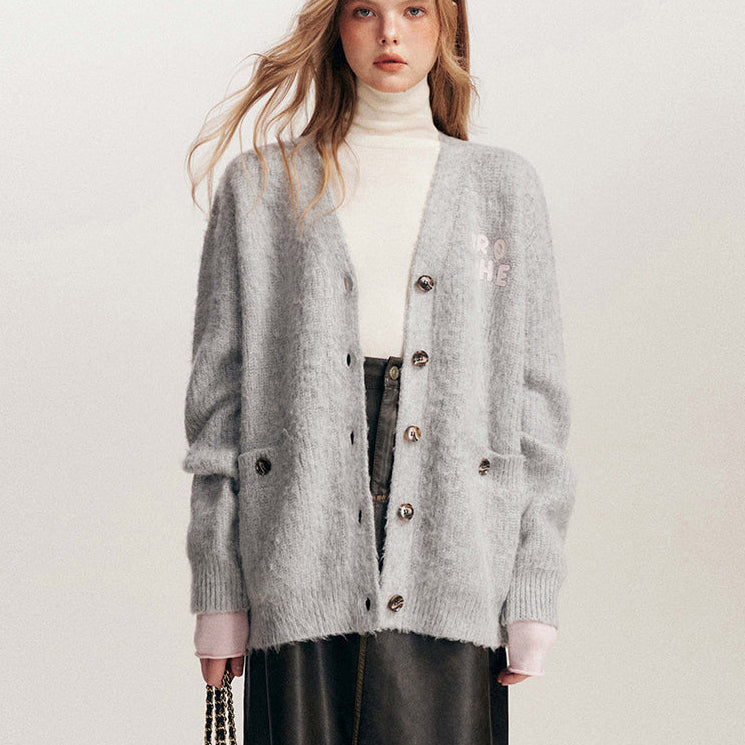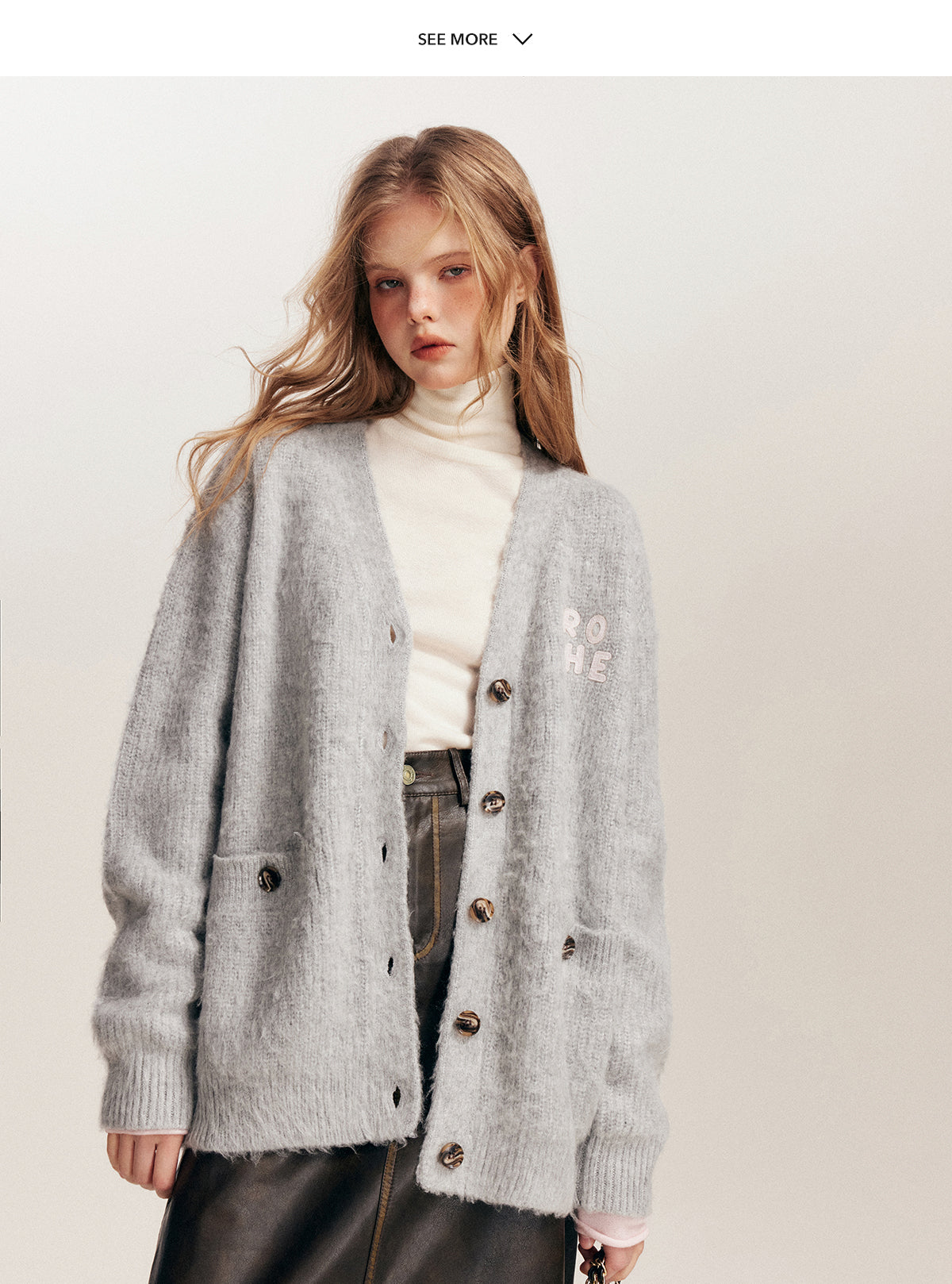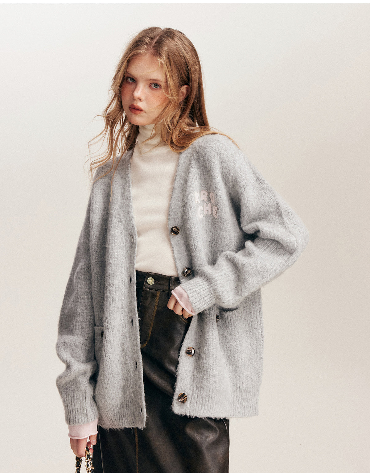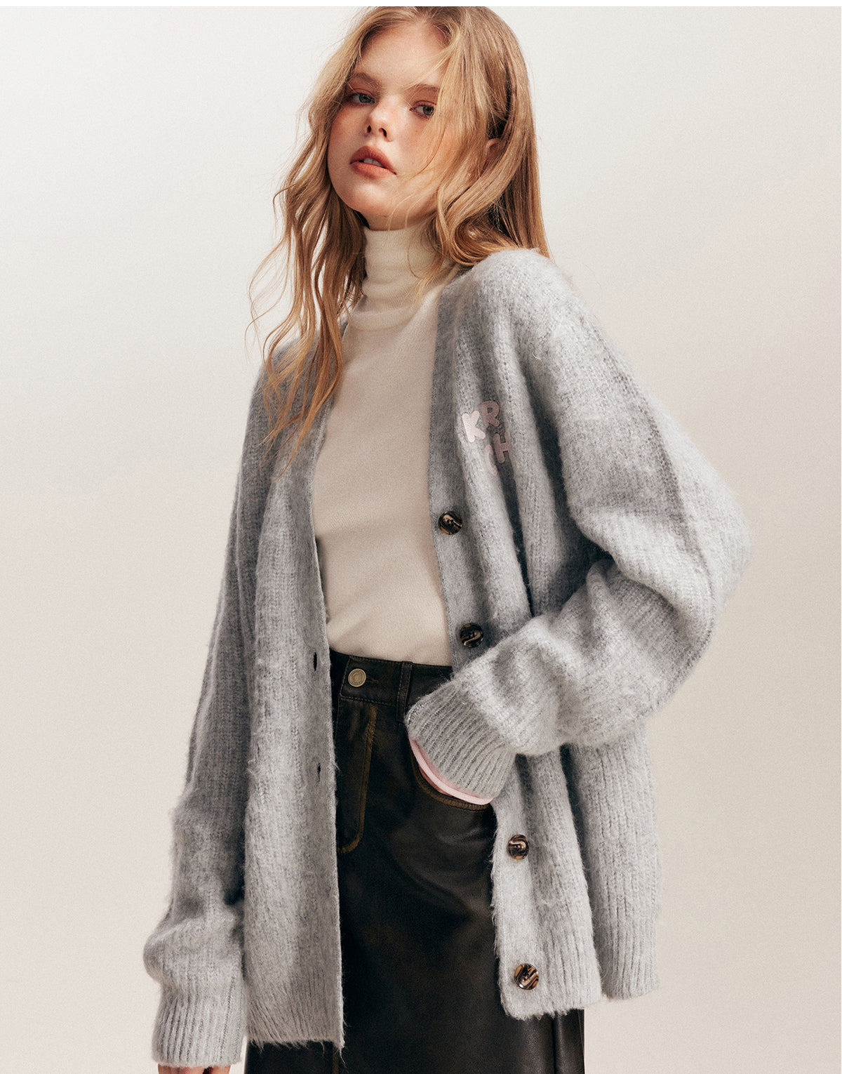 Kroche SS2402 撞色贴布刺绣V领针织开衫