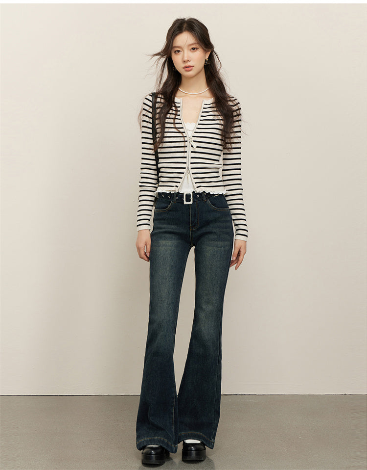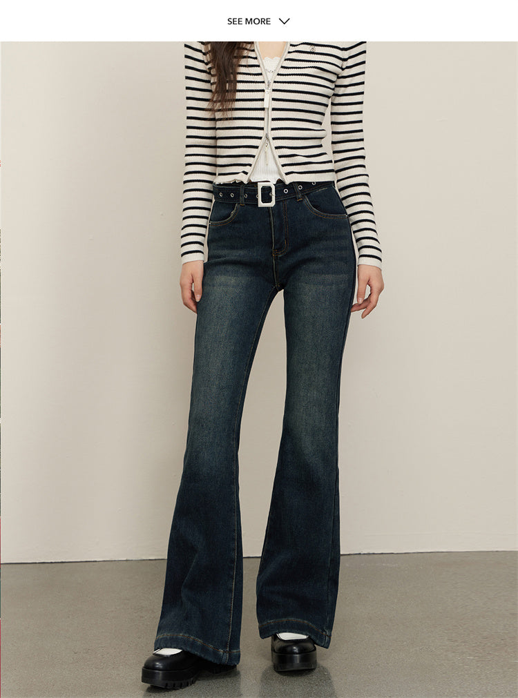 Kroche SS2402 高腰微喇水洗牛仔裤 复古蓝