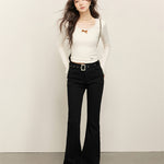Kroche SS2402 高腰微喇水洗牛仔裤 黑