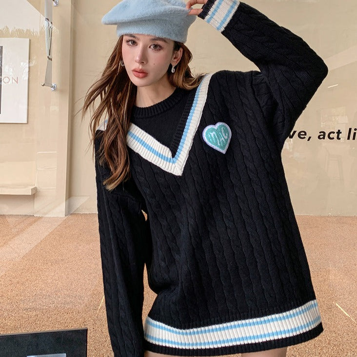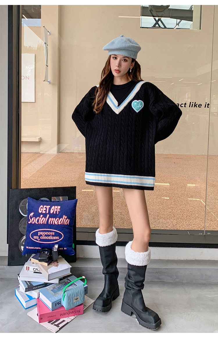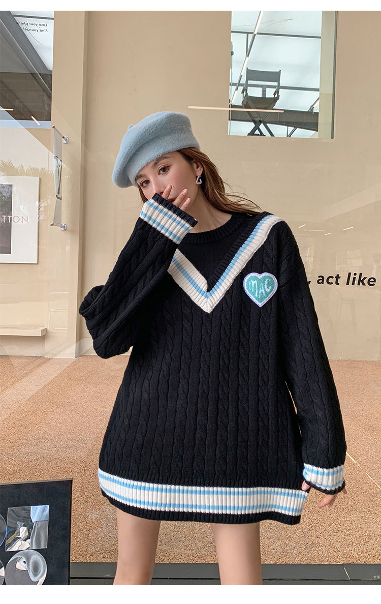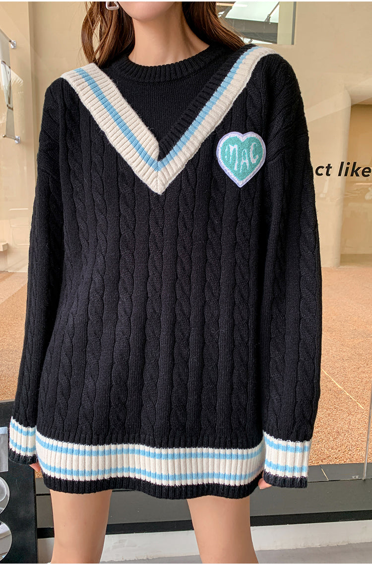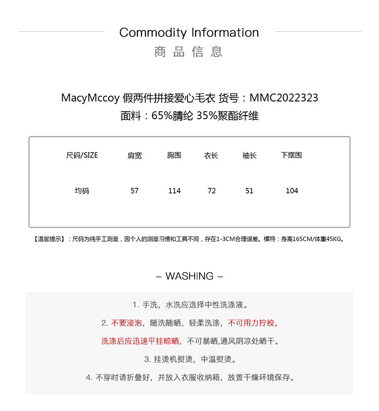 MacyMccoy 假两件拼接爱心毛衣 黑