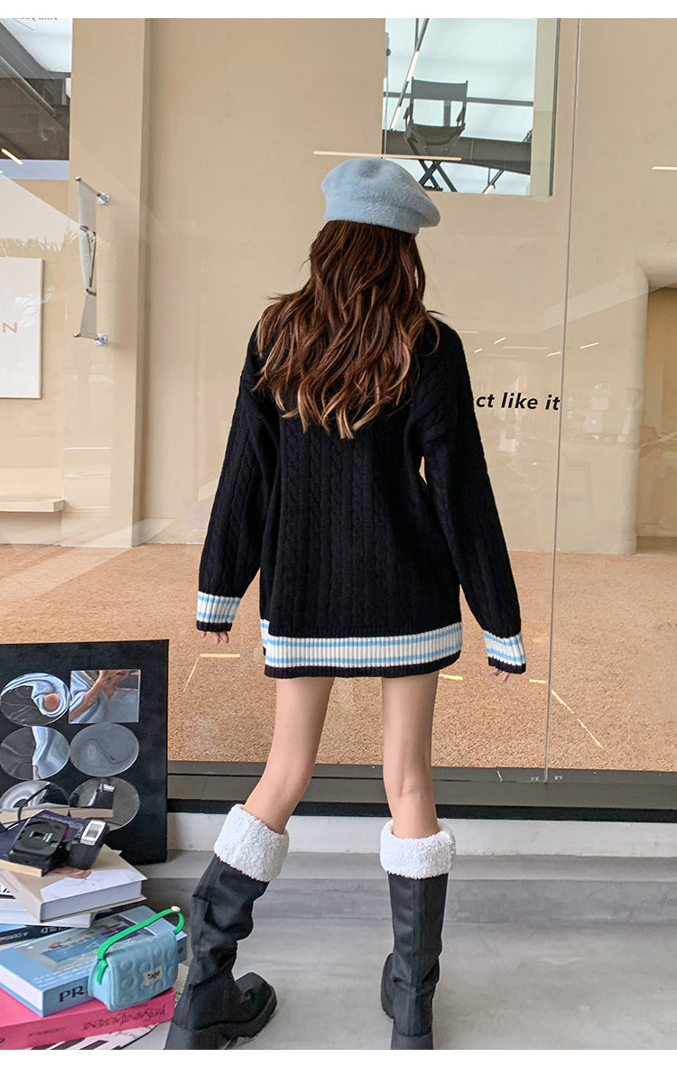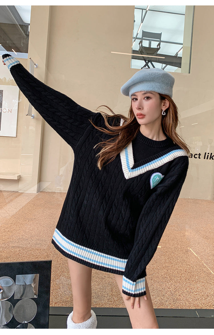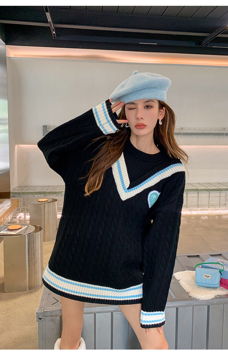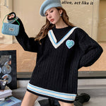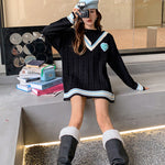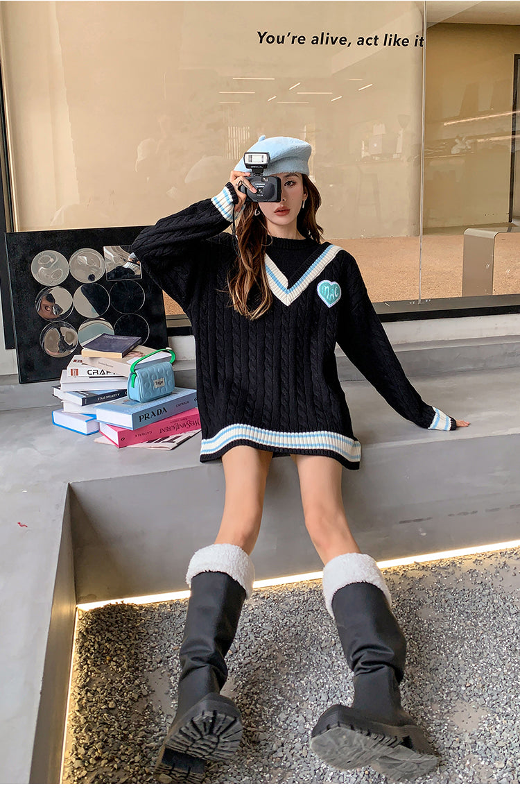 MacyMccoy 假两件拼接爱心毛衣 黑