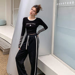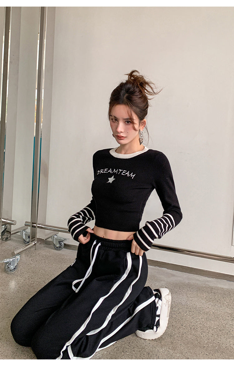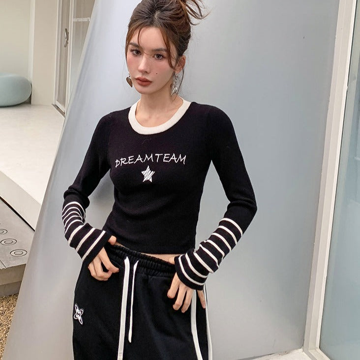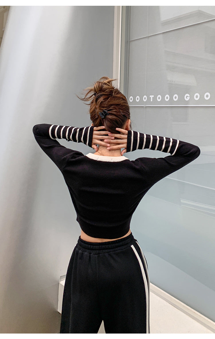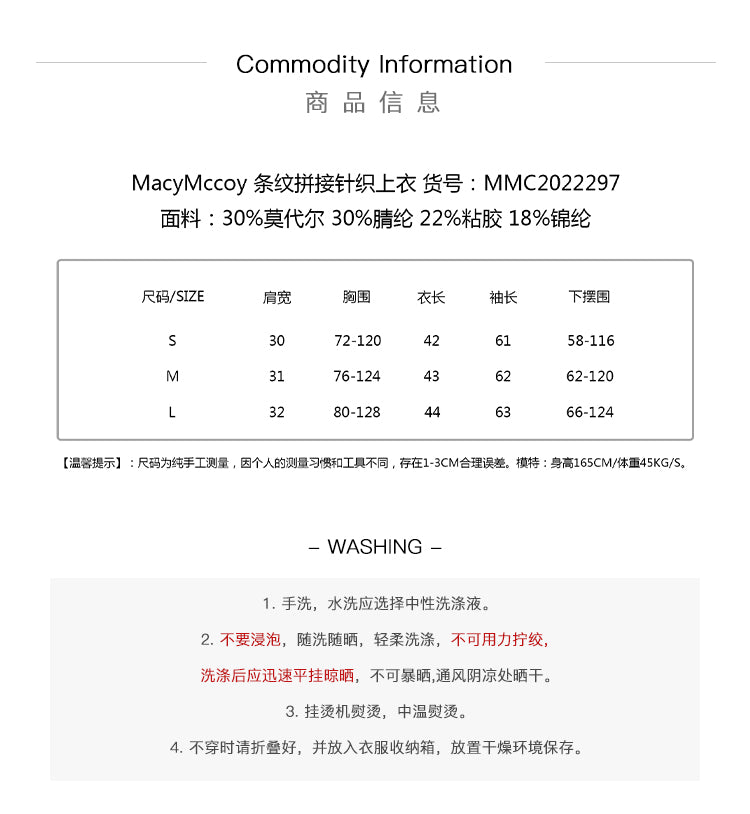 MacyMccoy 条纹拼接针织上衣 黑