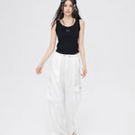 MacyMccoy 2406 缎面垂感工装阔腿裤 白