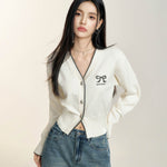 MacyMccoy 2408 撞色蝴蝶结针织开衫