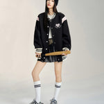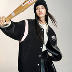 MacyMccoy 2409 爱心刺绣棒球外套 黑