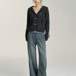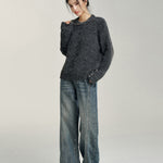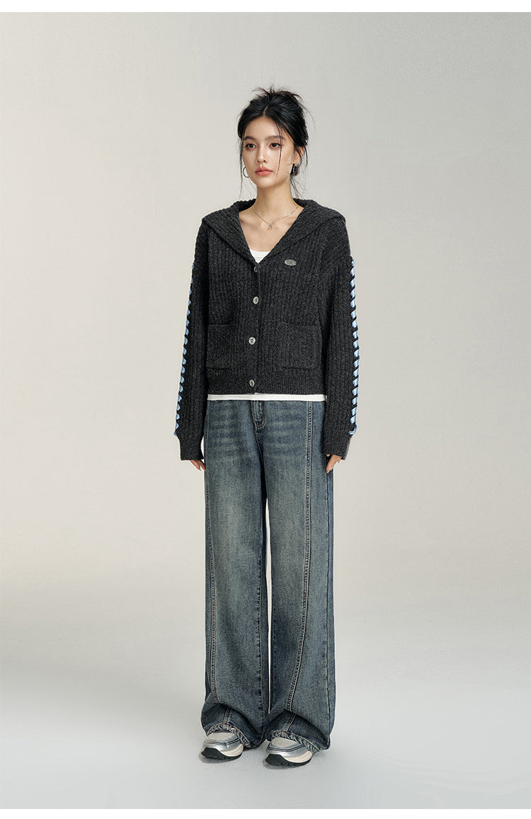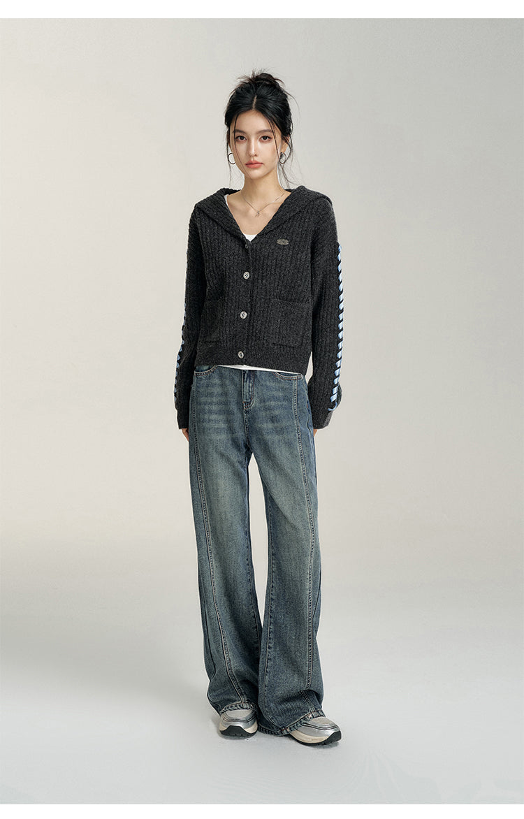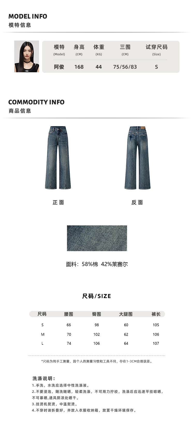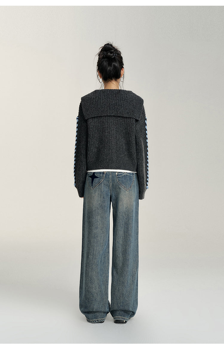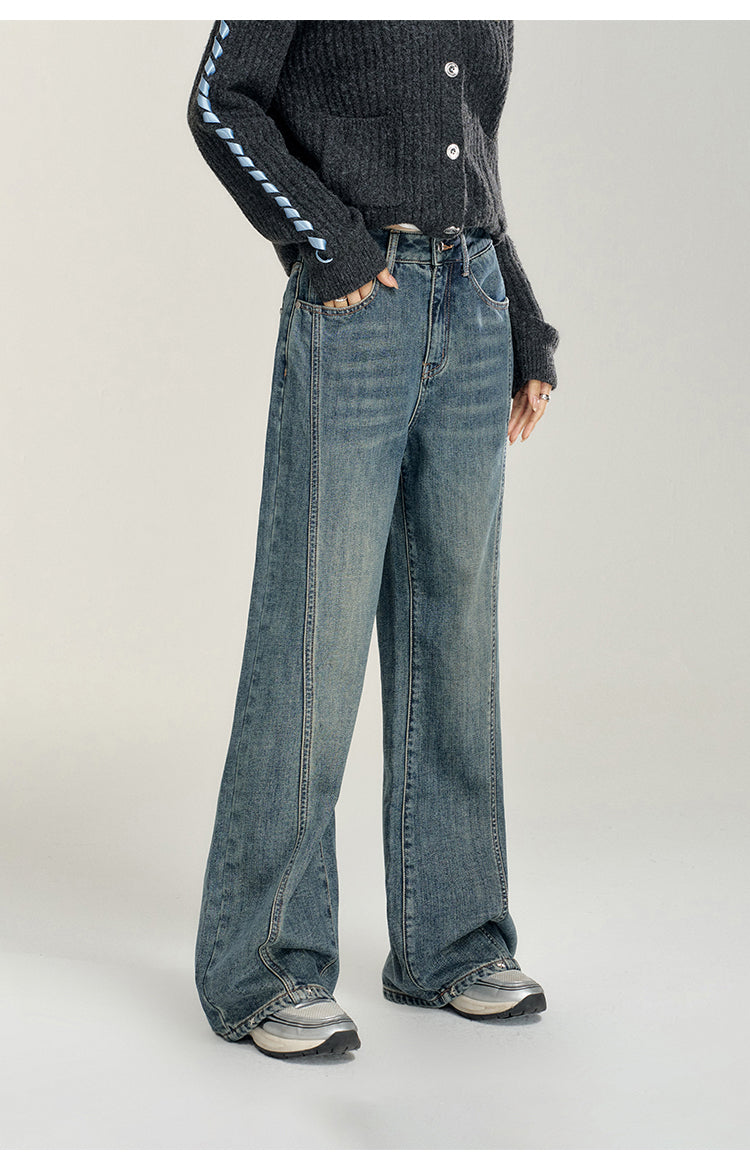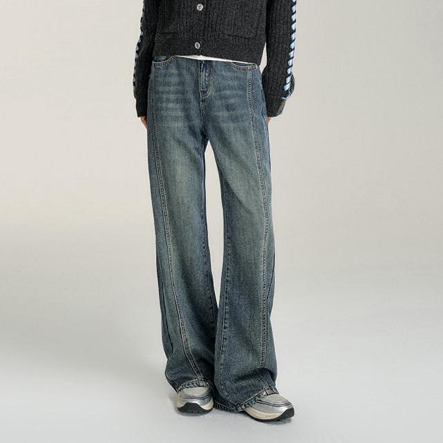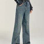 MacyMccoy 2412 爱心加绒牛仔阔腿裤 蓝