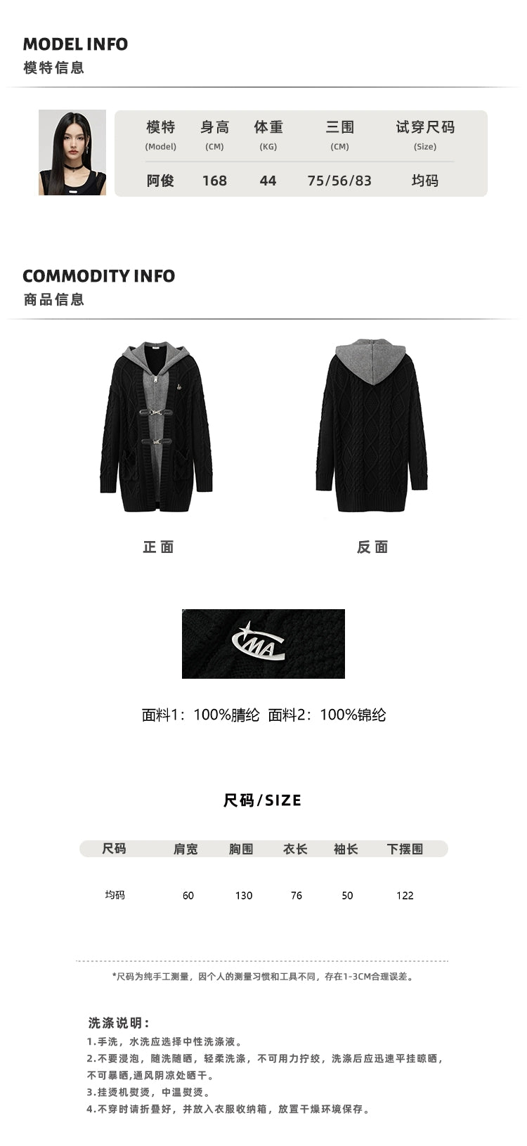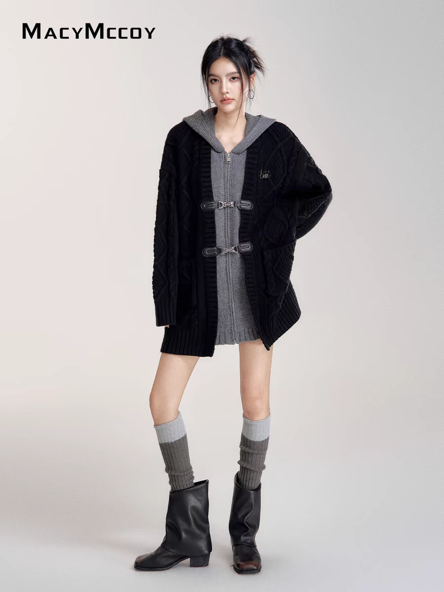 MacyMccoy 2501 带帽针织大外套 黑