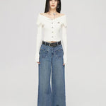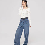 MacyMccoy 2501 爱心口袋牛仔阔腿裤