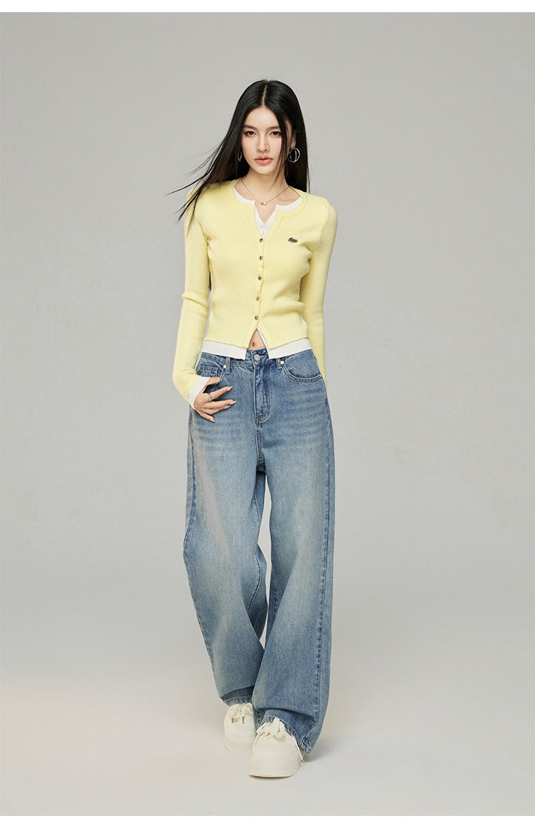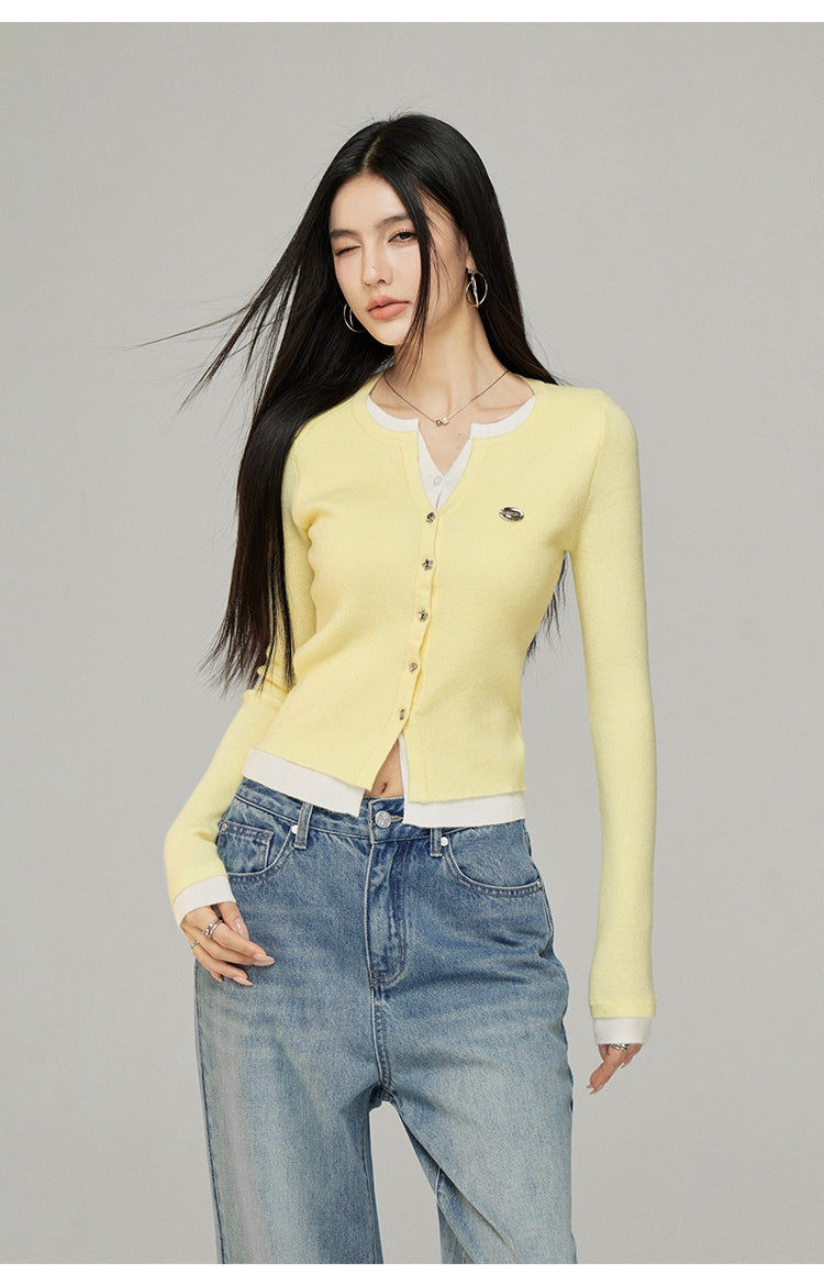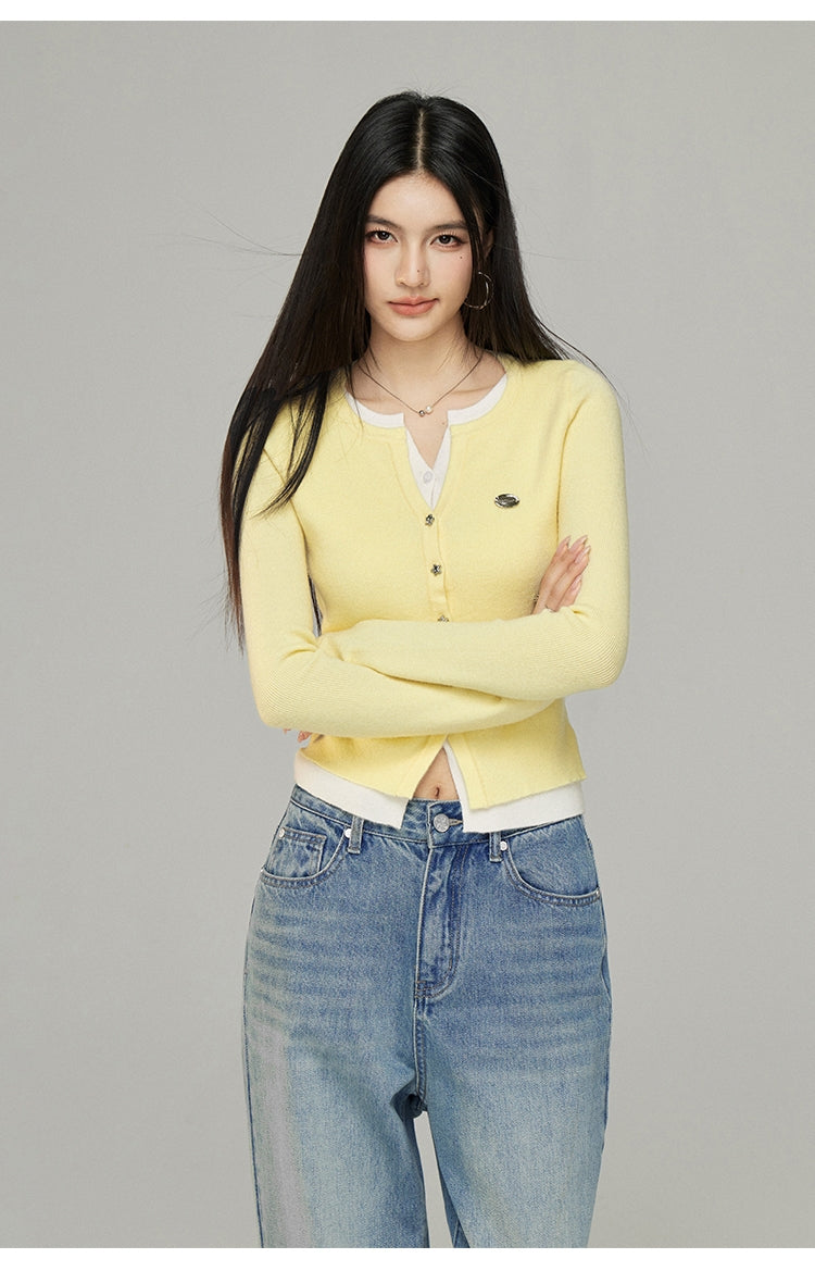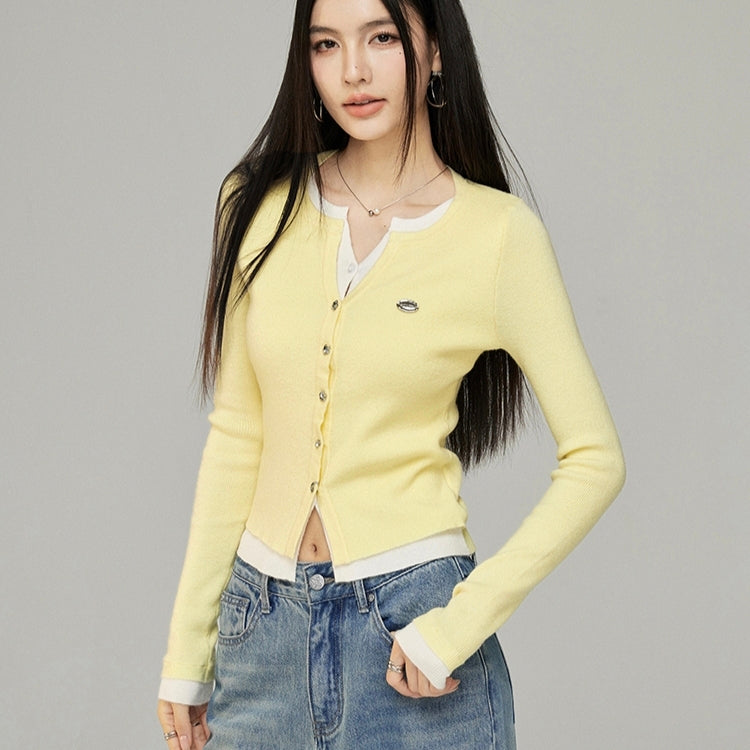 MacyMccoy 2503 假两件撞色针织衫 黄