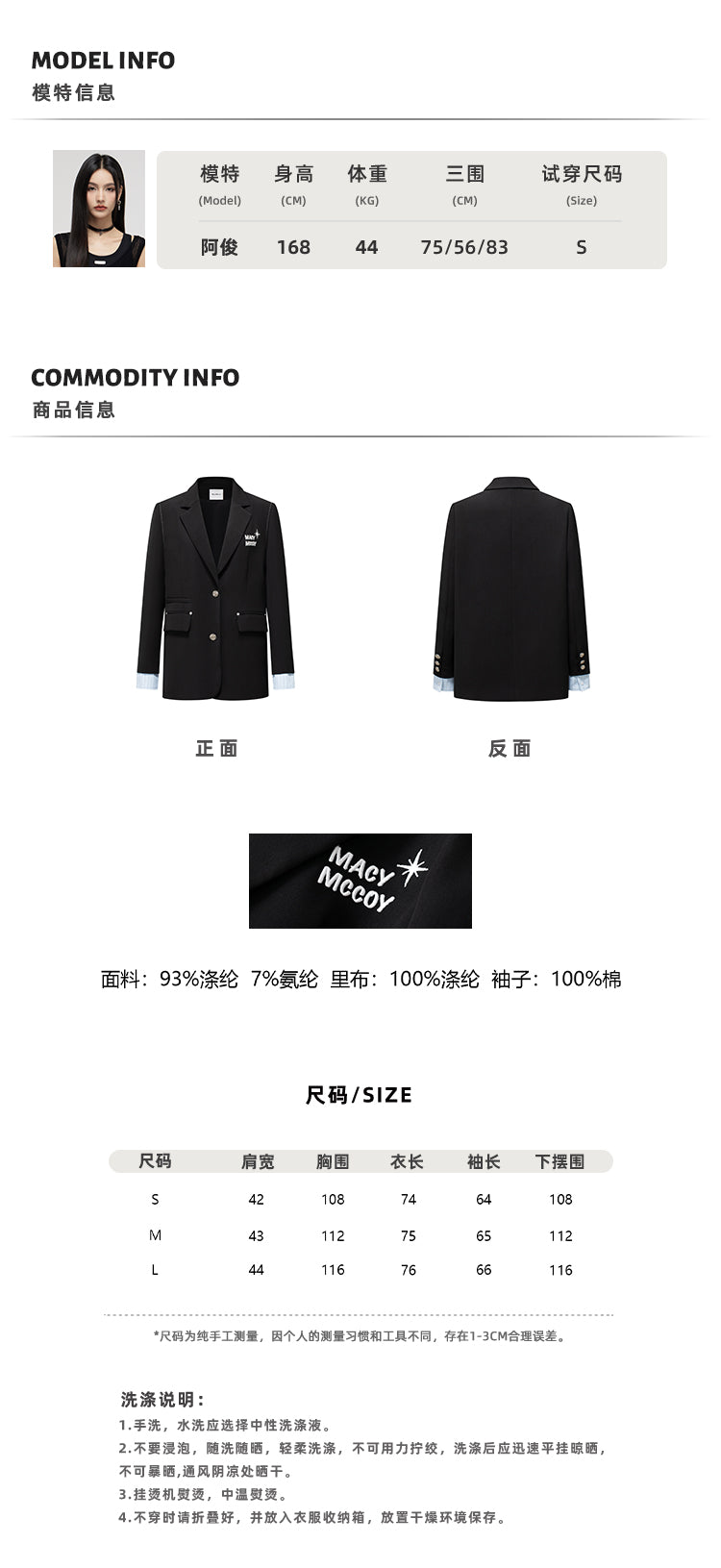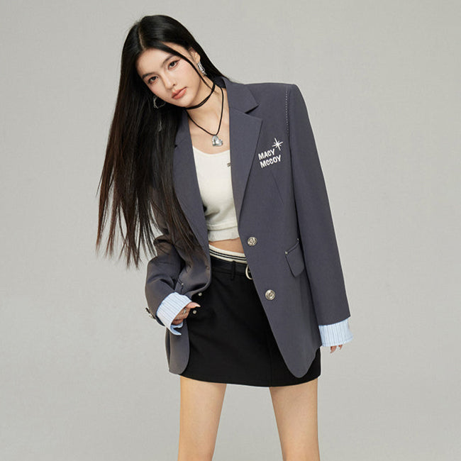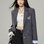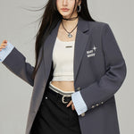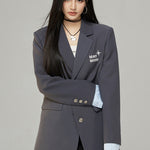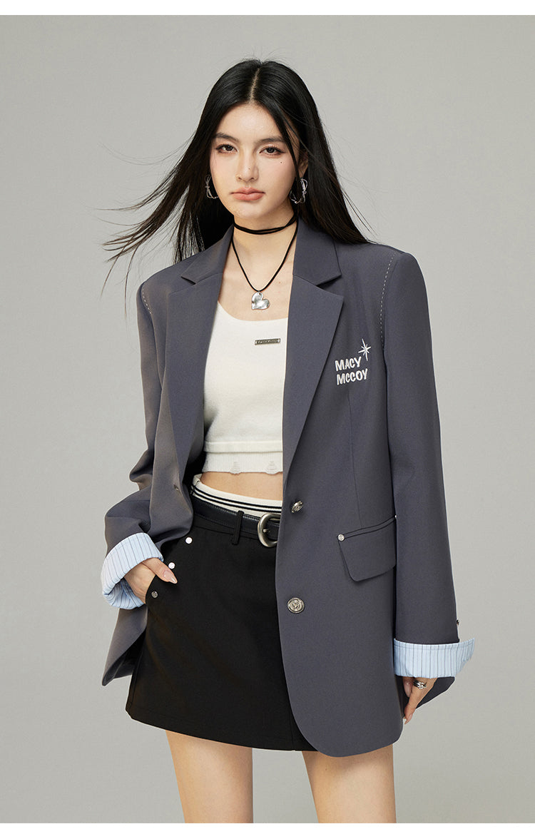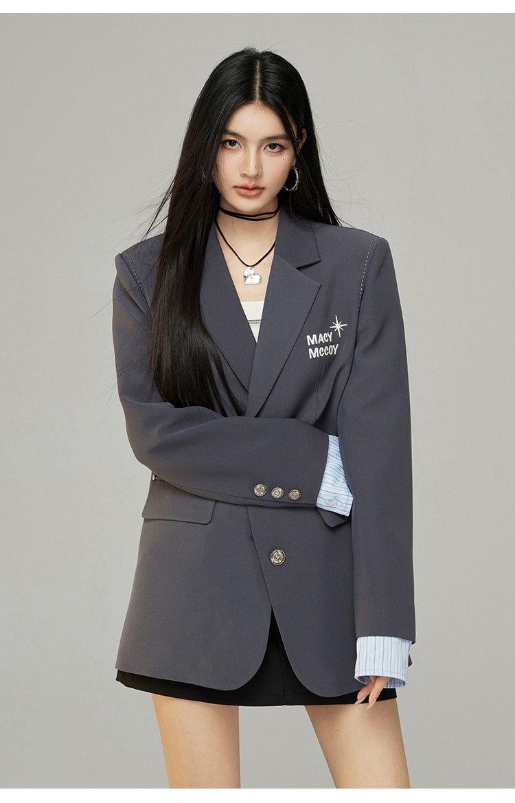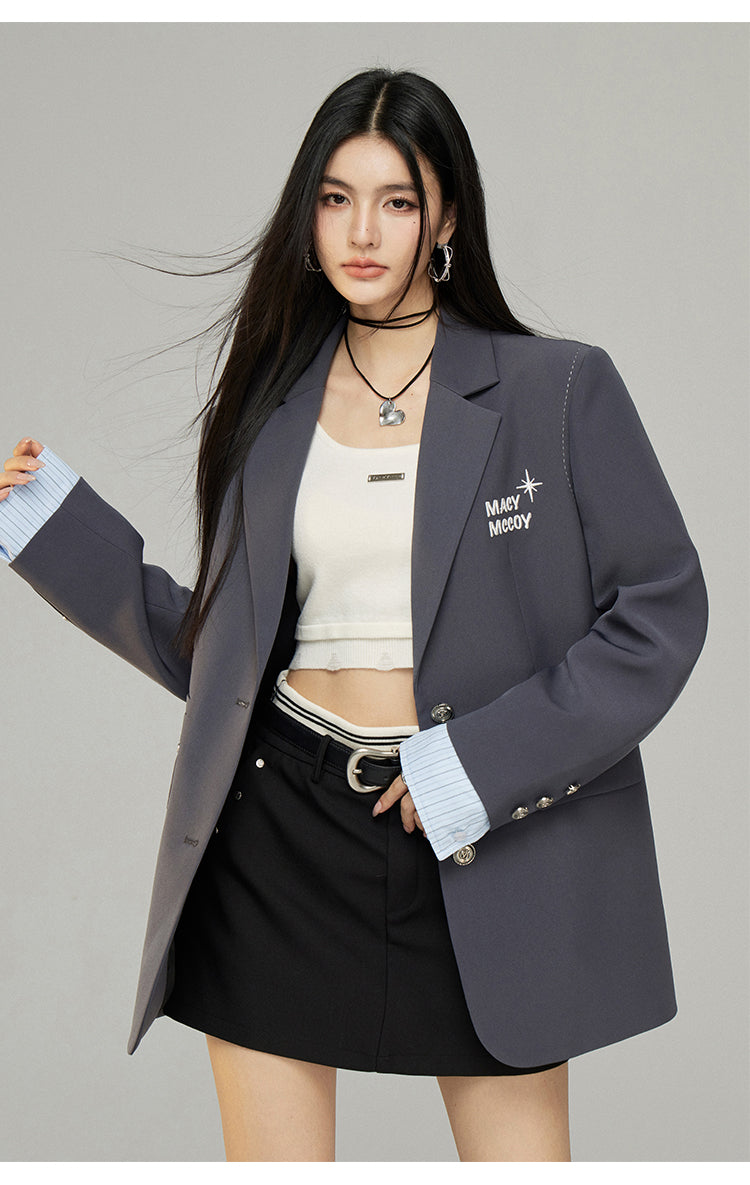 MacyMccoy 2503 假两件翻边刺绣西装 灰