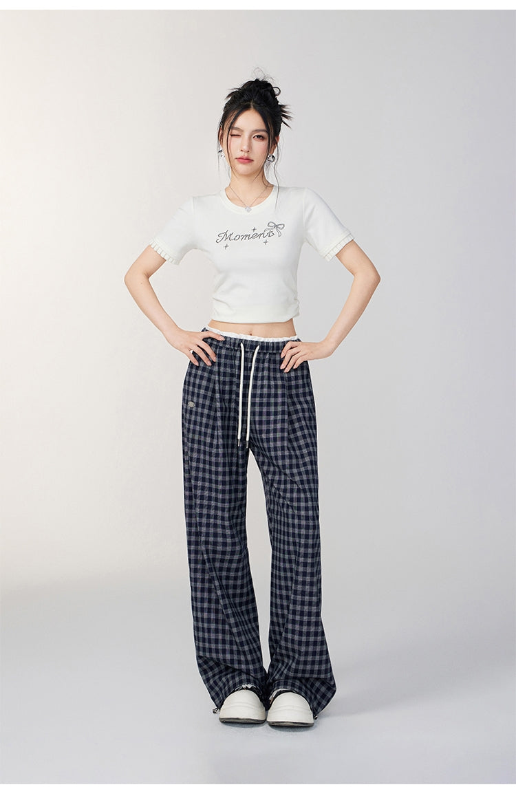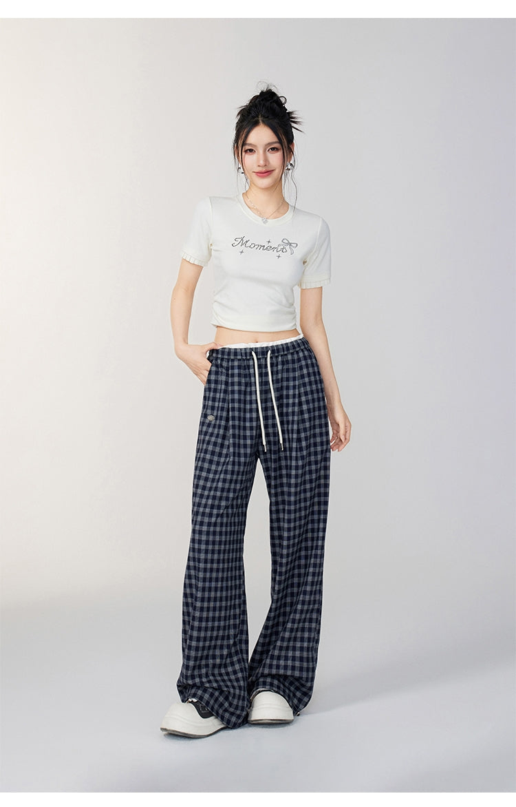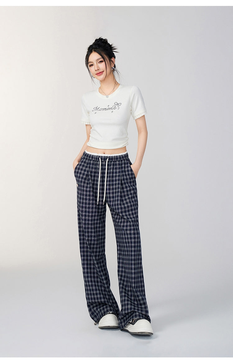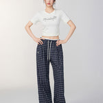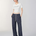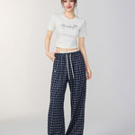 MacyMccoy 2503 撞色垂感西装阔腿裤 蓝格